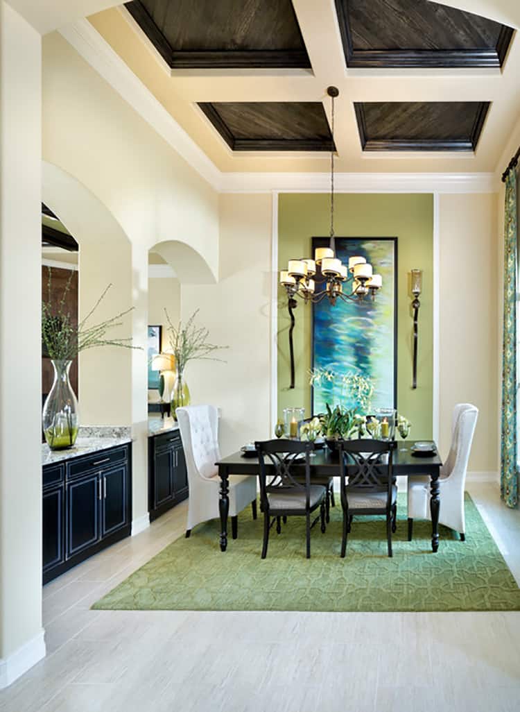 Еще один метод визуально поднять потолок — это создать градиент от темного к светлому. Начинайте снизу с темного оттенка, постепенно переходя к более светлому. Это создает впечатление, что потолок будто парит. Покрасьте потолок в такой же цвет, как верхняя часть стены, и вы получите эффект маскировки углов.