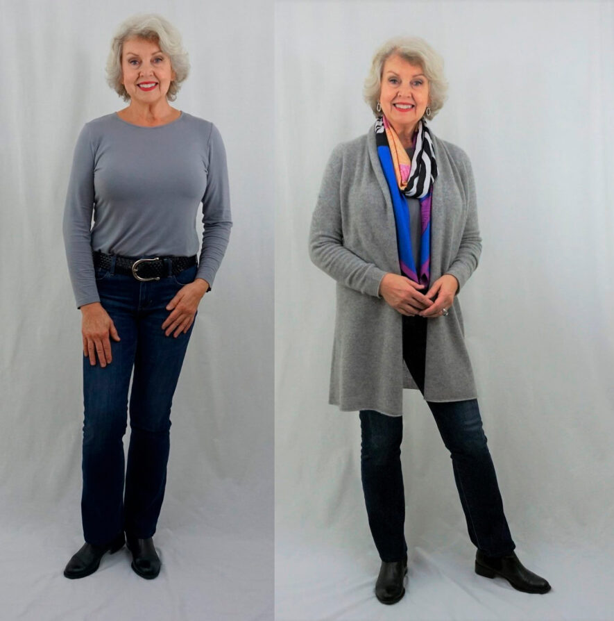 Один из самых простых способов выглядеть стройнее — это накинуть легкую накидку или удлиненный кардиган. Это визуально вытягивает силуэт и скрывает животик, если он имеется.