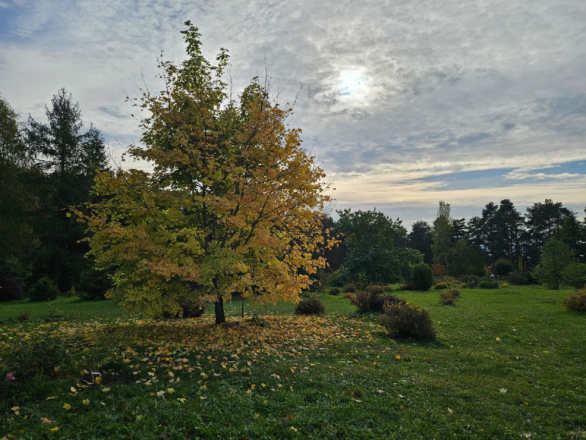 Мне ботсад очень понравился. Не хватало стендов с какой-то общей информацией о конкретном регионе, флора которого представлена на участке, но табличек с описанием деревьев или кустарников было довольно много. Деревья осенью особенно красивы — много ярких жёлто-красных оттенков. А ещё поразил яблоневый сад. В правилах ботсада сказано, что на его территории запрещено собирать плоды и ягоды, но, судя по состоянию упавших плодов, никто из работников ими не занимается, так что я насобирала с земли несколько штук. Запах — закачаешься! Все яблоки оказались сочными и слегка кисловатыми — как я люблю. Сортов много разных.