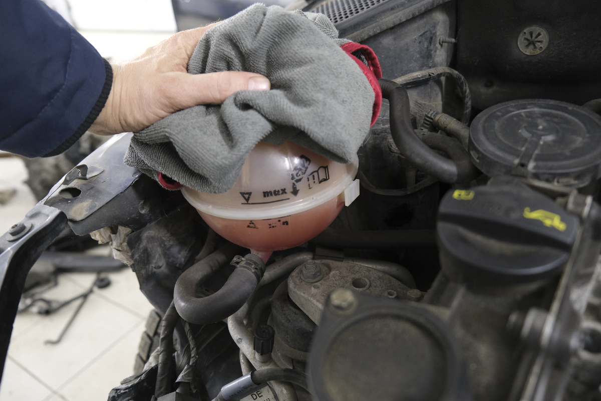 Ошибка номер 1 — открытие крышки расширительного бачка на горячем двигателе. Кажется, это должно быть известно даже ребенку, ведь все жидкости при нагревании расширяются, следовательно, и антифриз тоже. Но по какой-то причине многие так называемые «опытные» водители об этом забывают и лезут «в жар», не дожидаясь, пока ОЖ остынет. Разумеется, делать этого крайне не рекомендуется, но если вам всё же необходимо, что называется, в срочном порядке открутить крышку бачка, то это можно сделать, соблюдая определенные меры предосторожности. Накрываем сверху тряпкой, и осторожно начинаем отворачивать крышку бачка, выпуская воздух из системы. Когда «шипение» прекратится, можно полностью открутить пробку.