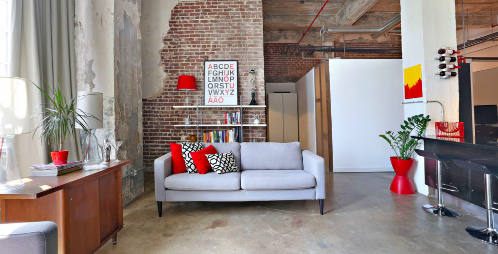 В отделке преобладают натуральные материалы и часто инженерные сети нарочито подчеркнуты. Например используют открытую проводку и красят в контрастные цвета коммуникации (вентиляция/трубы).