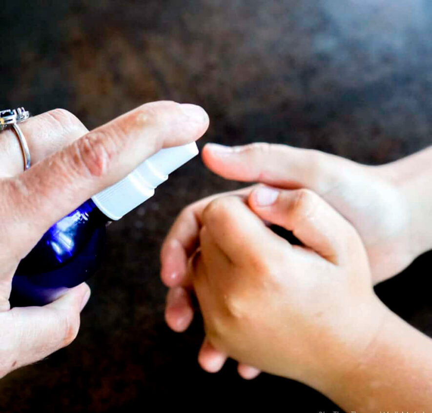 Самодельный спрей для рук эффективно дезинфицирует, когда нет возможности их помыть. В его составе противовирусные и антибактериальные эфирные масла, алоэ вера, глицерин и базовое масло для увлажнения и защиты кожи, а также спирт для уничтожения вирусов и микробов.