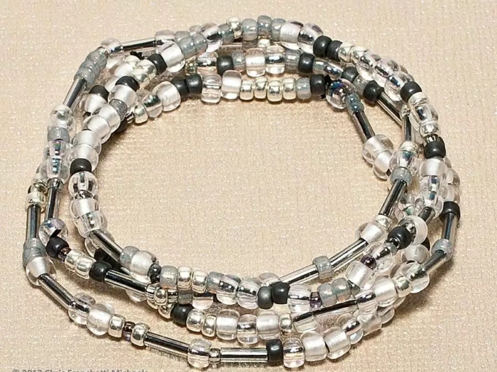 Отлично в таких браслетах смотрится неровный китайский бисер. Он идеально подходит для эластичных браслетов благодаря своей непредсказуемой неровности и различиям в размерах. Если у китайского бисера указан размер, например, 11/0, это означает, что бисерины будут варьироваться по размерам, и довольно значительно. Посмотрите на фотографию. Видите, как он разнообразен? Это именно то, что нужно для эластичных браслетов. А еще он невероятно дешевый. Это просто находка для нестандартных украшений.