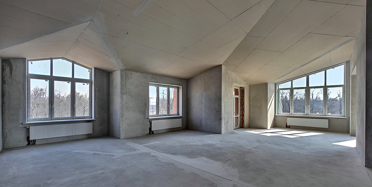 Важно: такой вид отделки это как качественный полуфабрикат, который осталось “приготовить”. Здесь нужно будет выбрать вариант финишной отделки стен, добавить напольное покрытие, установить розетки/выключатели, добавить светильники и установить межкомнатные двери и плинтуса.