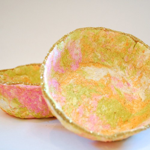 Вы, вероятно, не раз видели мраморные тарелки, выполненные из самозатвердевающей полимерной глины. Мне они тоже очень нравятся. Я решила создать свою уникальную версию этих тарелок, но используя папье-маше. Тот же метод, те же шаги, но другой материал и потрясающий результат.