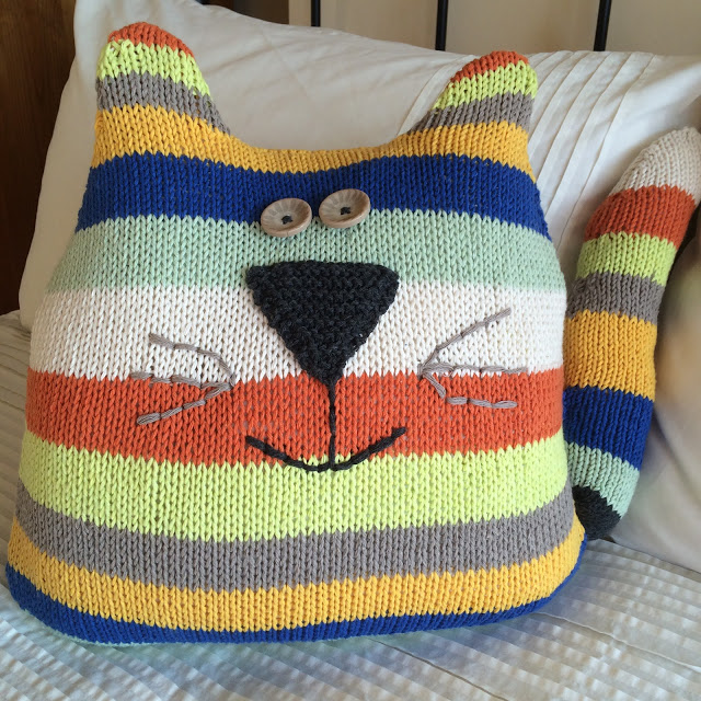 Забавная идея для использования остатков пряжи. Вяжем декоративную подушку для дивана в форме кота.
