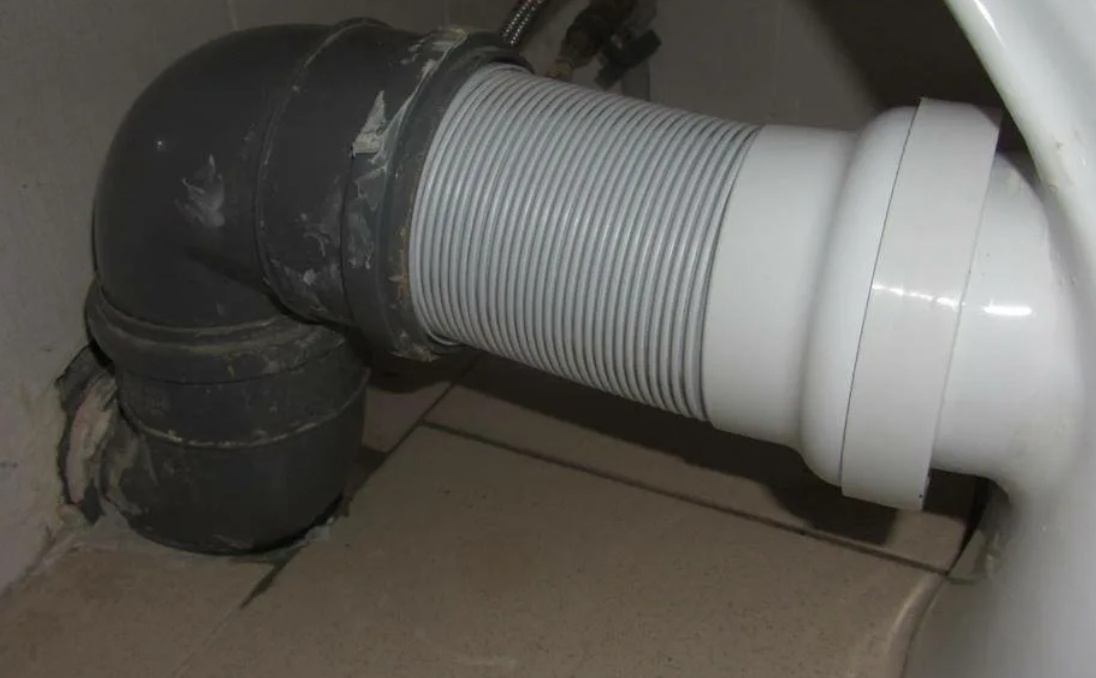Как обычно осуществляется подключение унитаза к канализационной трубе? Через такую гофрированную трубу, которую можно изгибать и удлинять.