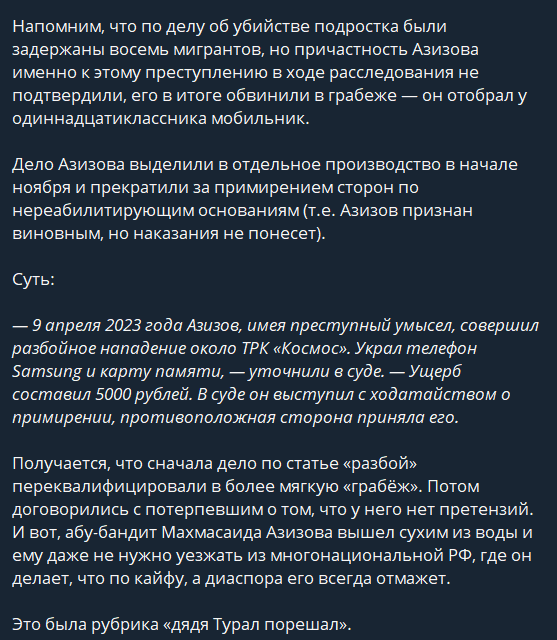 Калининский районный суд Челябинска принял решение, вызвавшее широкий резонанс в обществе. Уголовное дело в отношении Махмасаида Азизова, мигранта из Таджикистана, задержанного по подозрению в душегубстве подростка Игоря Естафьева у торгово-развлекательного комплекса «Космос», было прекращено. Решение суда основано на примирении сторон, что стало поводом для дискуссий о справедливости и законности таких решений.
