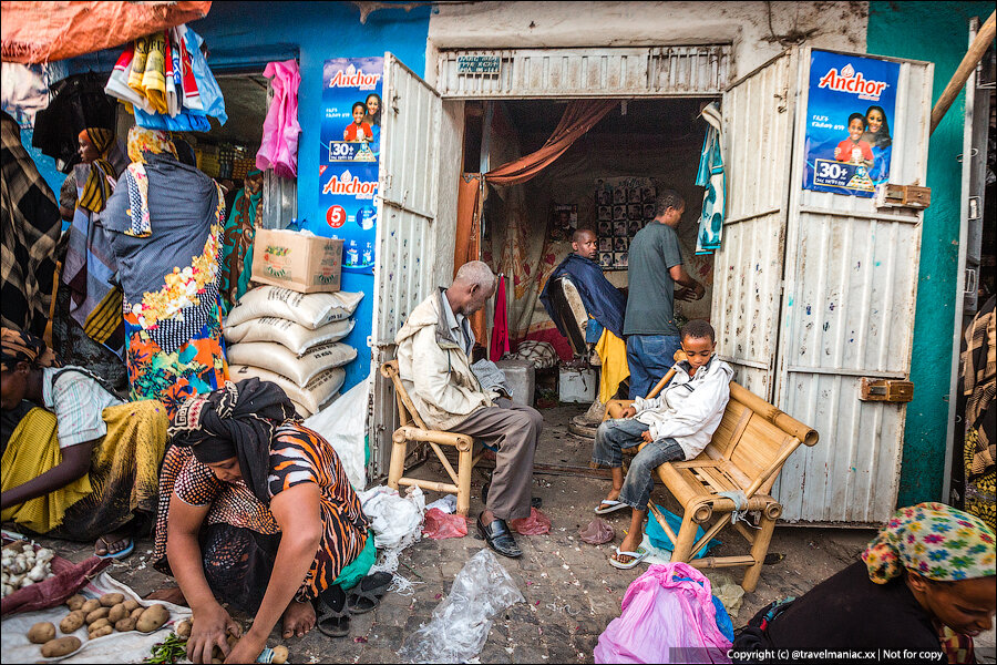 Для путешественника, для фотографа грязные трешовые рынки в Эфиопии — настоящий клад. Но вот если смотреть на них не в качестве бесконечного источника впечатляющих кадров, а как на место по продаже продуктов, овощей и фруктов, то это точно будет худшим местом из тех, что может себе представить обычный русский человек. Даже живущий в бедной российской глубинке даже в самом депрессивном регионе.