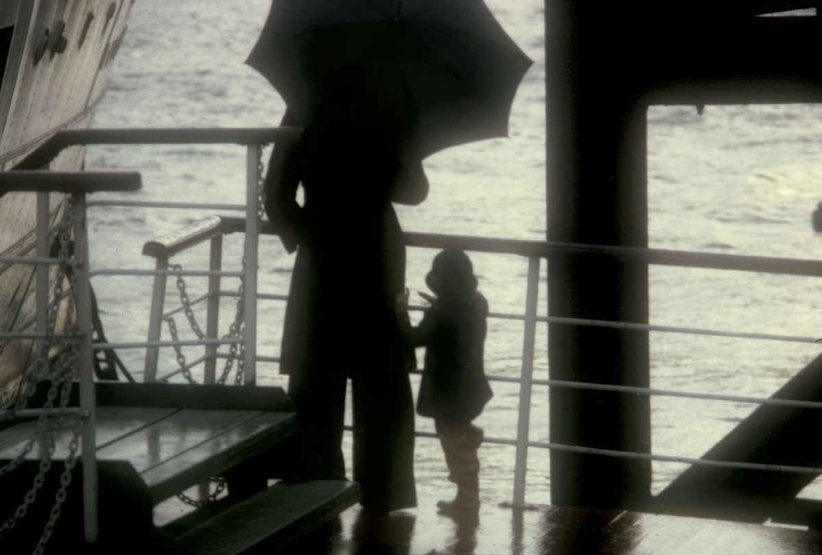 Загадочная сцена на пирсе. Фигура женщины с зонтом и ребёнка на фоне моря – изображение, в котором ощущается прощание, ожидание или даже скрытая драма.