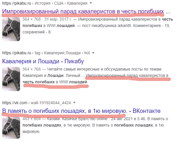Фотография, распространяемая развлекательными сайтами и пользователями в соцсетях с подписью «Импровизированный парад кавалеристов в честь погибших в WWI лошадей» и т.п..
