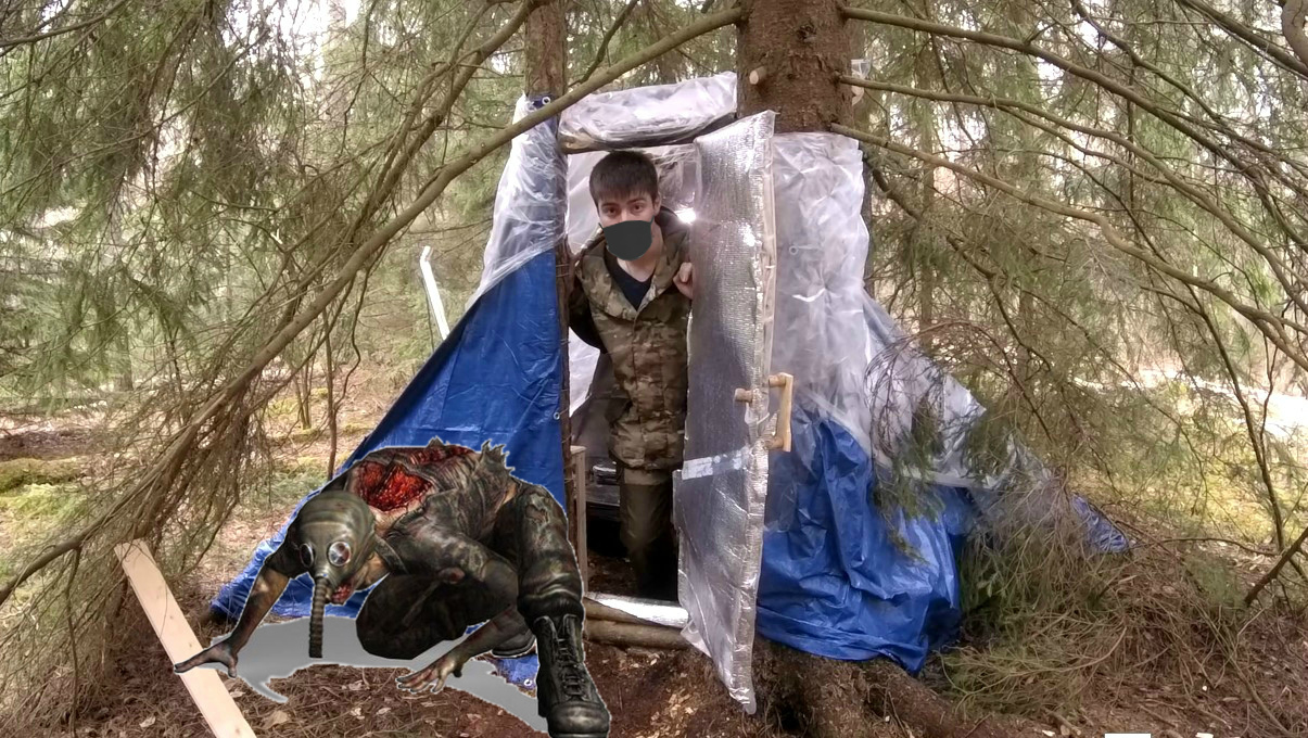 Для жилья в лесу, можно использовать палатку с печкой. Об этом я писал несколько статей. Ну а можно построить себе быстро небольшой шалаш, в котором будет удобно находиться во время эпидемии.