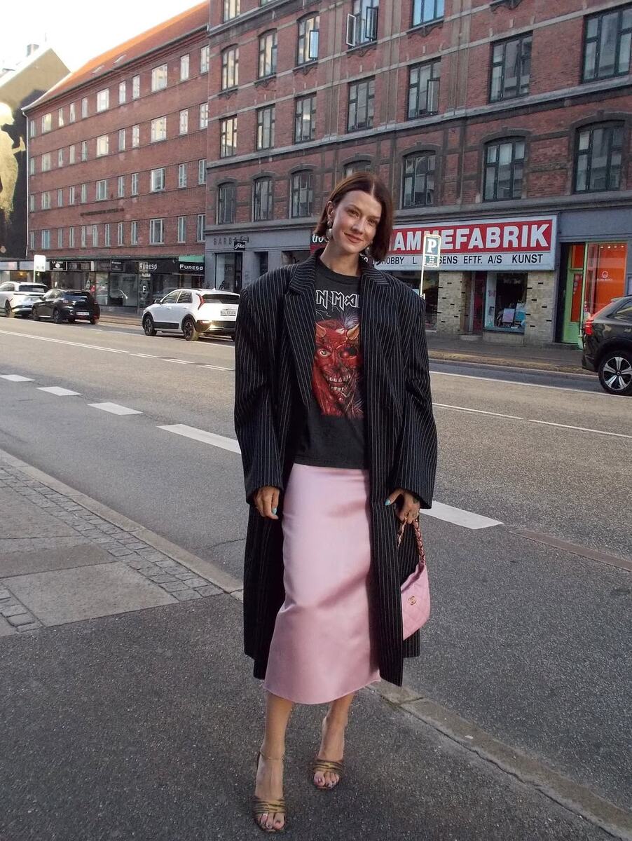 Нежно-розовые брюки на кулиске в сочетании с белым свитером с V-образным вырезом. Если розовый цвет для нас "слишком девчачий", мы надеваем футболку с принтом и полосатую куртку. Это идеальный способ преобразовать женственный розовый в динамичный образ, подходящий как для офиса, так и для бара. Розовый цвет поколения миллениалов в 2025 году уже не "милый". Он деловой, роскошный, и, благодаря Гвинет, это единственный оттенок, который мы хотим носить прямо сейчас.