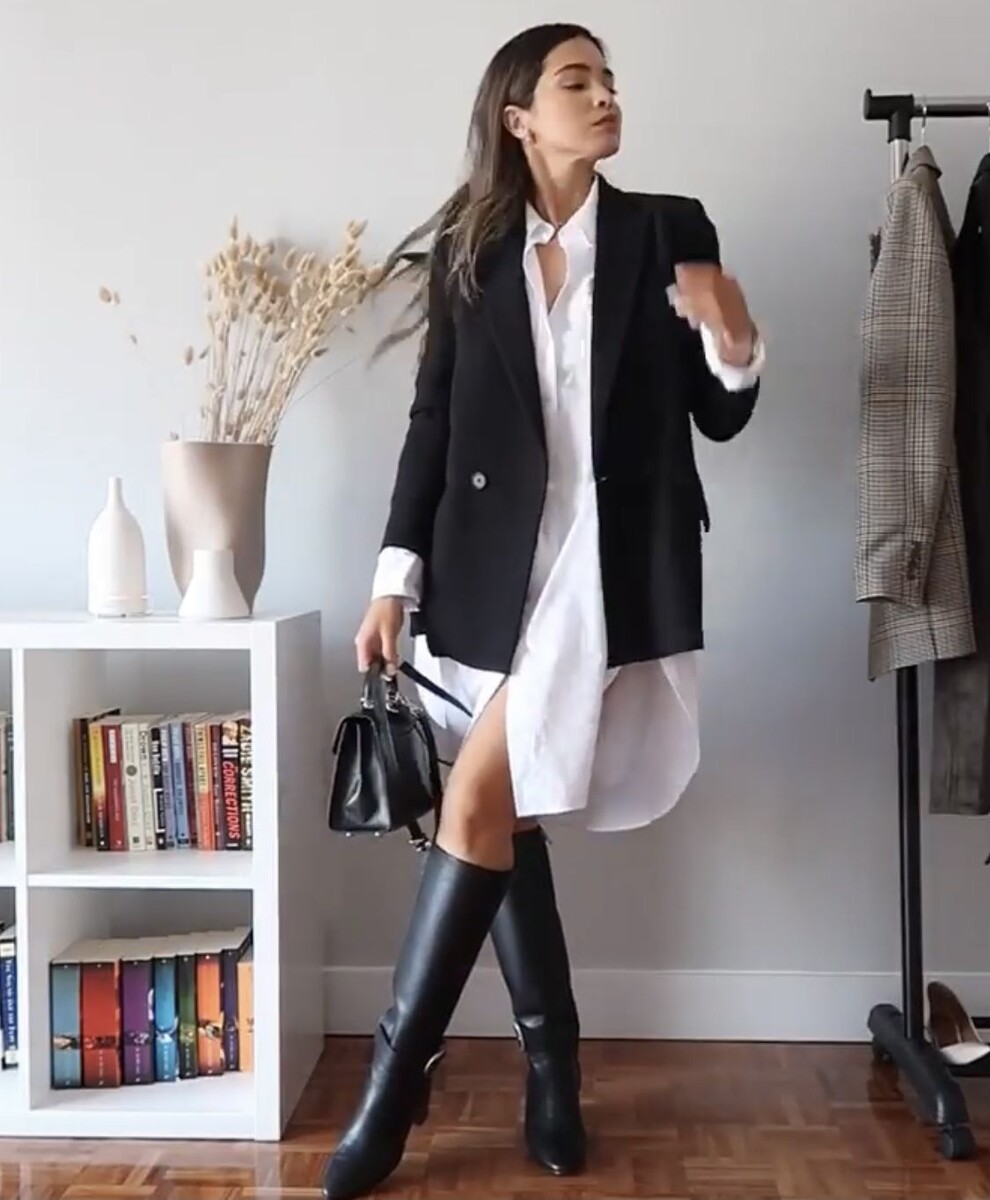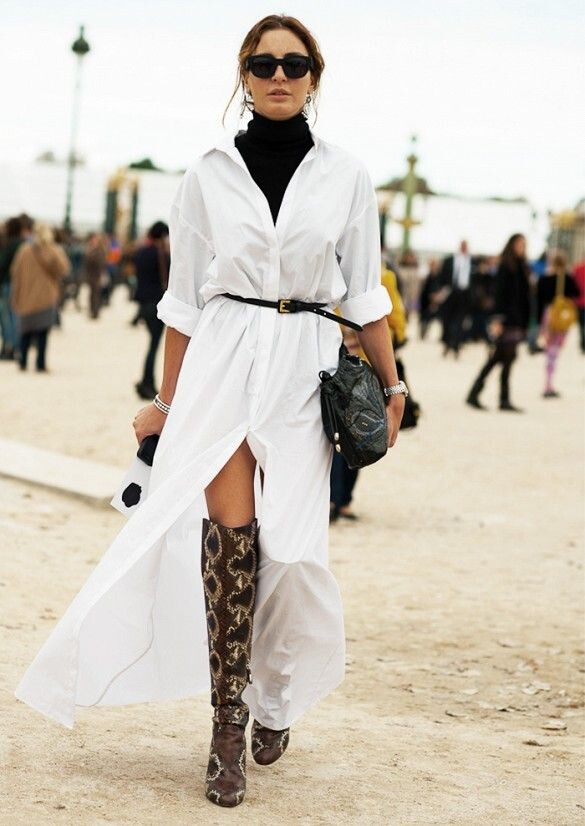 Застегнув такое платье только сверху и оставив его распахнутым, можно сочетать его со всеми типами брюк и легинсов (а при желании – и с юбками). Надеть платье поверх другого платья может показаться абсурдным, но если поэкспериментировать с платьем-рубашкой, можно убедиться, что получаются весьма интересные образы.
