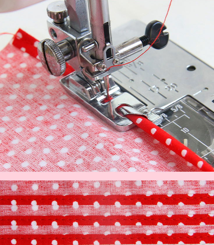 Посмотрите, какой изящный край получается! Я не смогла бы достичь такого результата без специальной лапки для кромки (3 мм). Ранее, когда я пыталась подогнуть край вручную, я обжигала пальцы утюгом, заутюживая края.