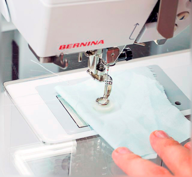 После проверки обоих отверстий вы можете использовать кнопку или педаль. Я делаю по 10 стежков для пуговицы с двумя отверстиями.