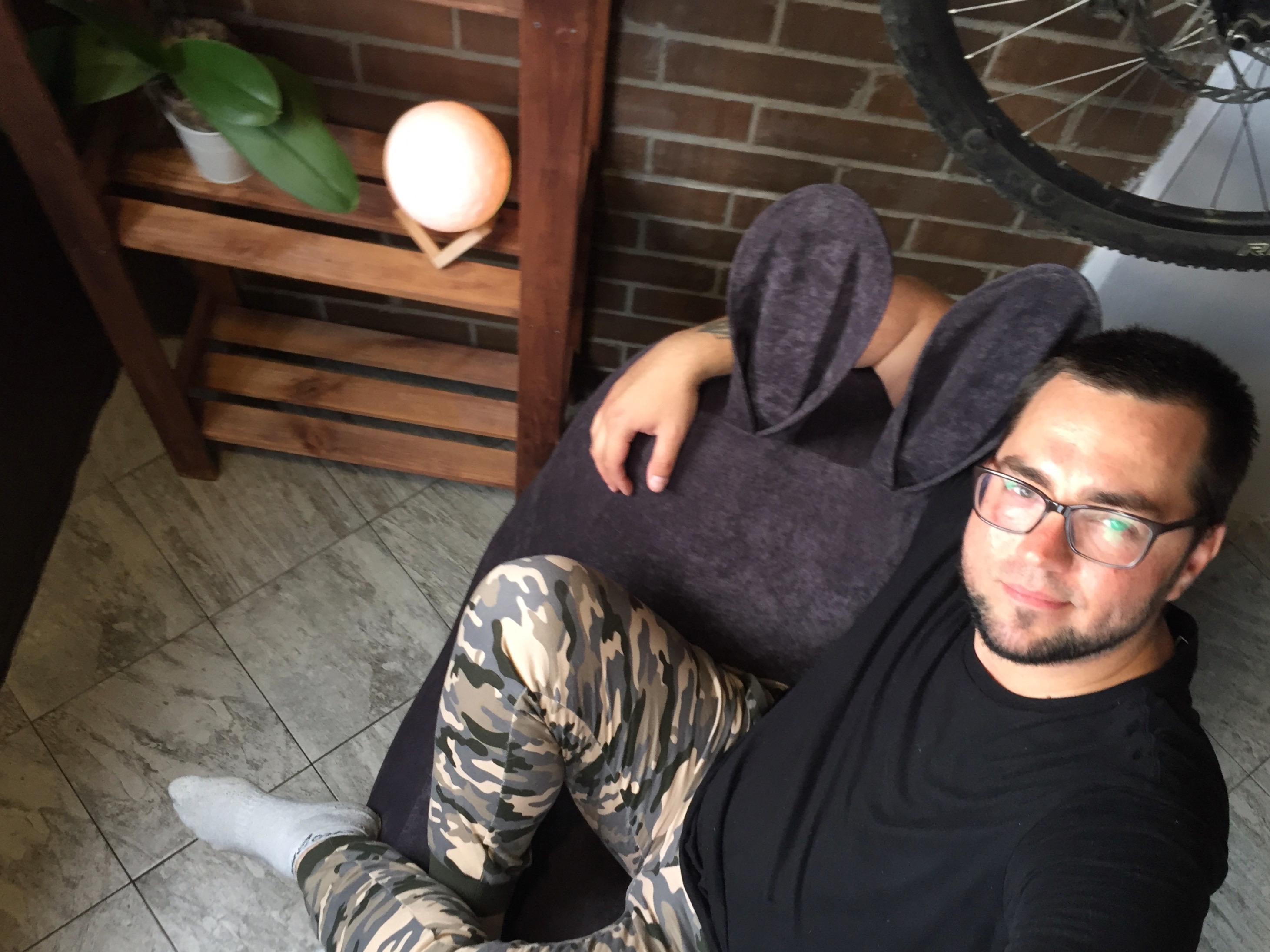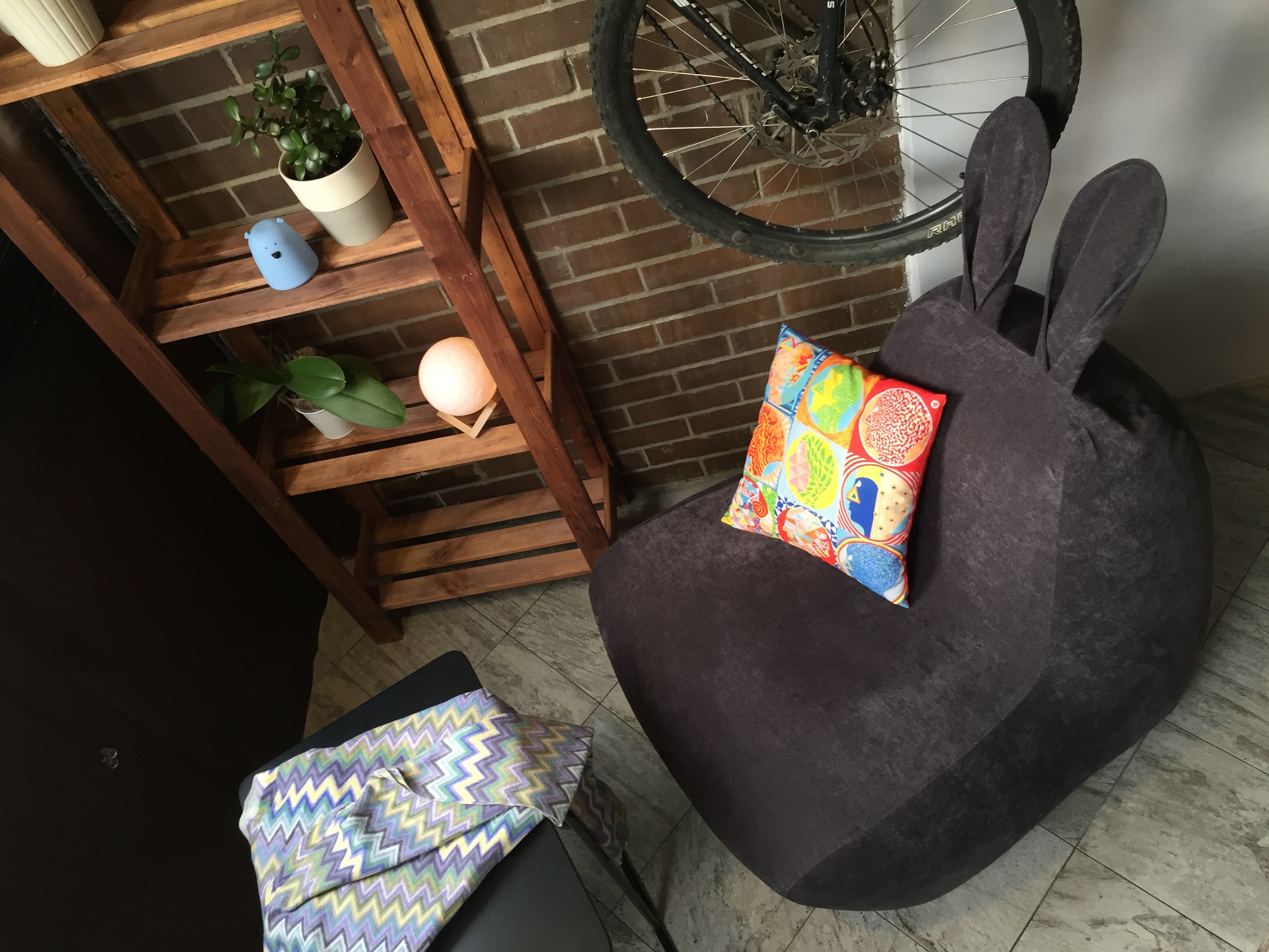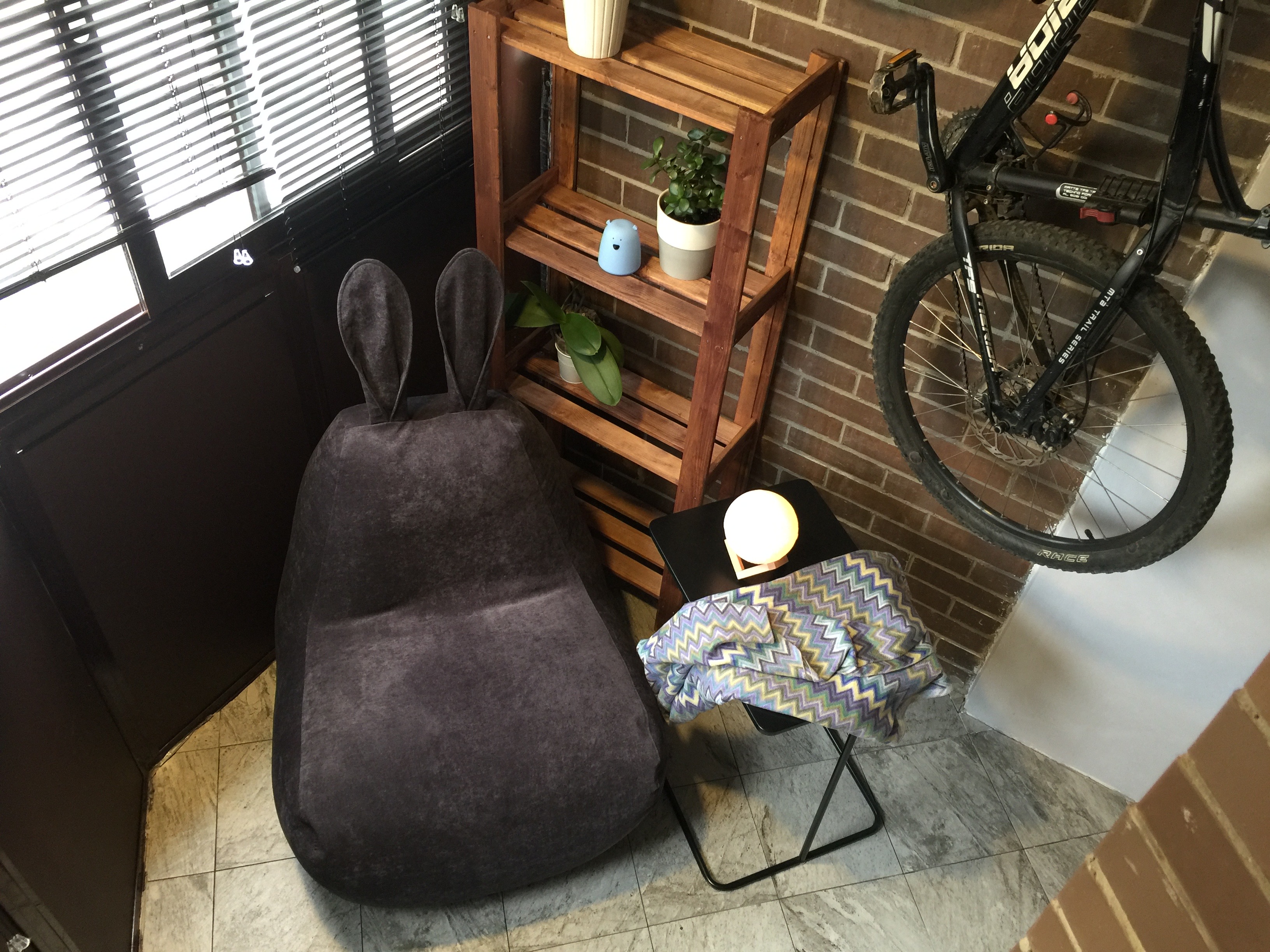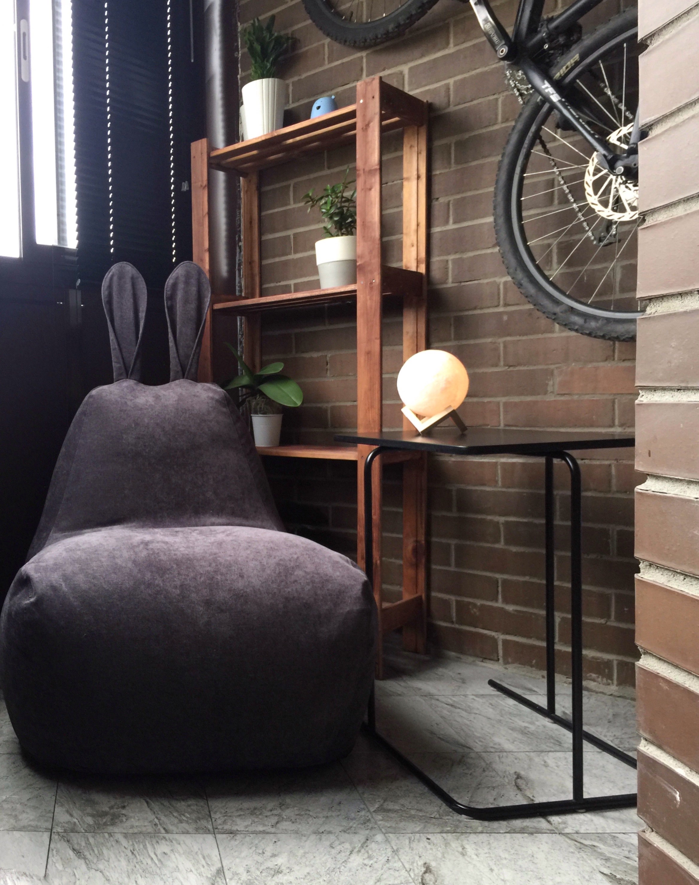 На балконе должно быть удобно, но поставить диван здесь негде, а стулья не создадут нужного комфорта. Поэтому я стал думать о приобретении пуфа. Особое внимание привлекла модель, напоминающая по форме зайца.