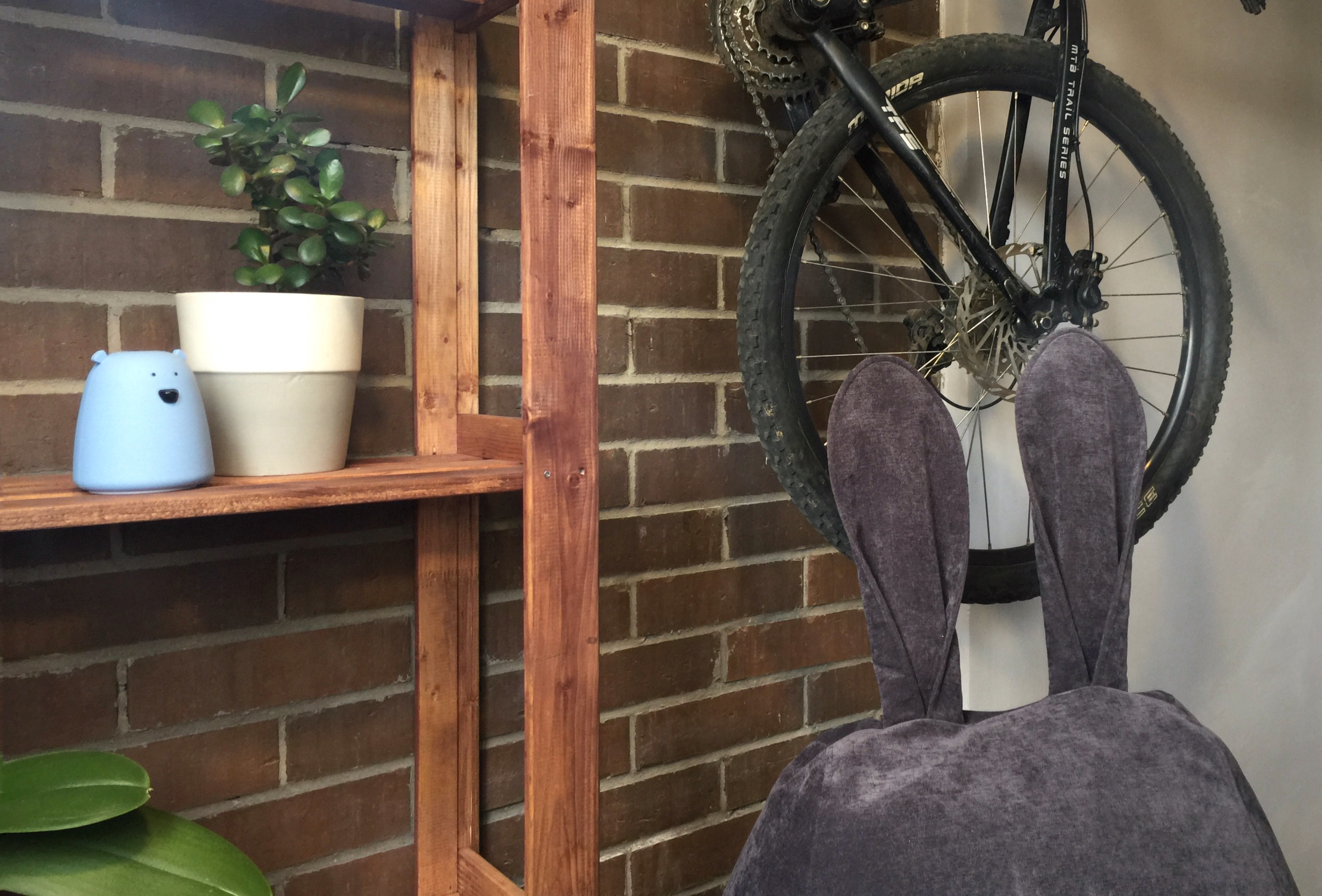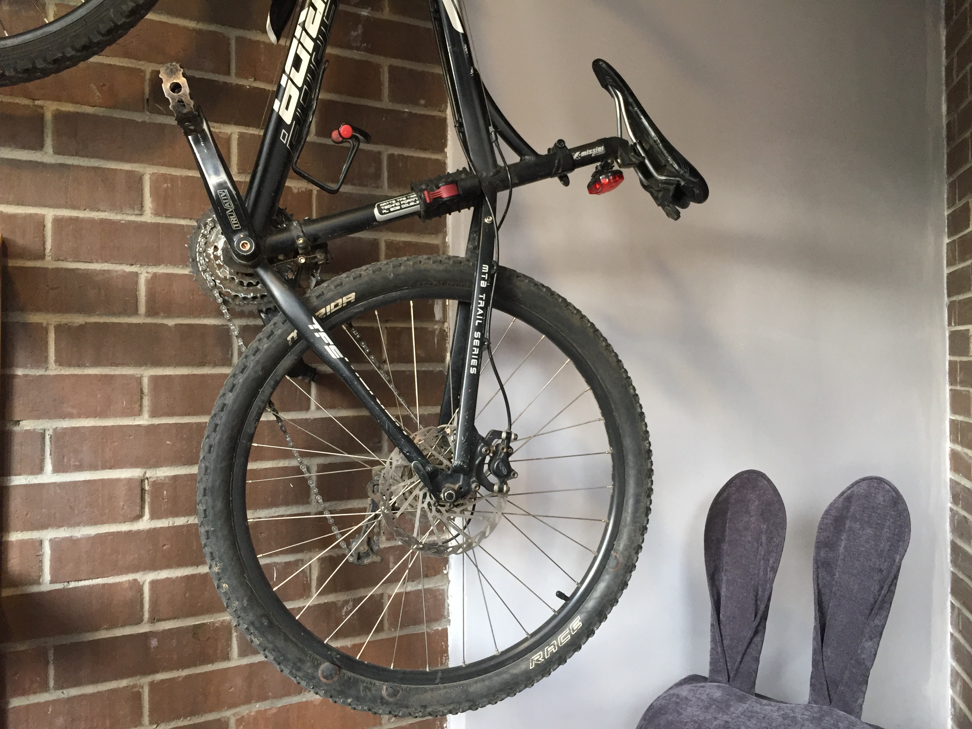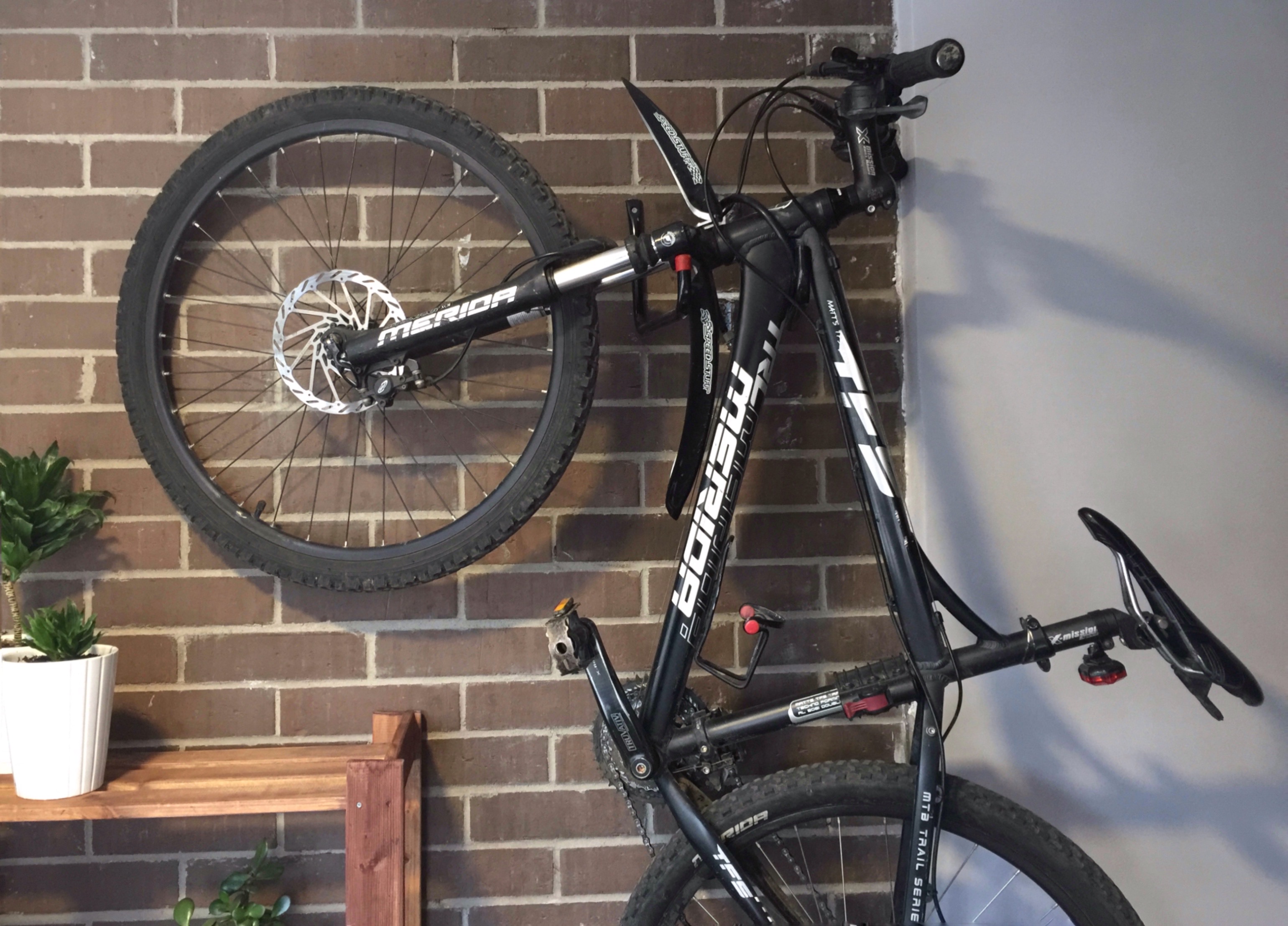 К кирпичной стене я прикрепил уголки, которые держат велосипед на вертикальной плоскости.