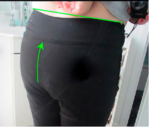 На изображении выше видно, что брючины перетянуты складками снизу и не облегают ягодицы и талию так, как должны. Мы также можем заметить, что брюки немного врезаются в ягодицы.