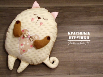 Вы уже подготовили сюрприз для своих близких ко дню Святого Валентина?! 🙂 Если нет, то у меня есть для вас маленький презент :). Сегодня я поделюсь с вами мастер-классом по созданию вот такого милого котенка-«сплюшки», подушки :).