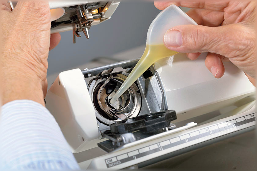 Наносите всего по несколько капель за раз. Излишек масла может затруднить очистку и фактически замедлить работу компонентов швейной машинки.