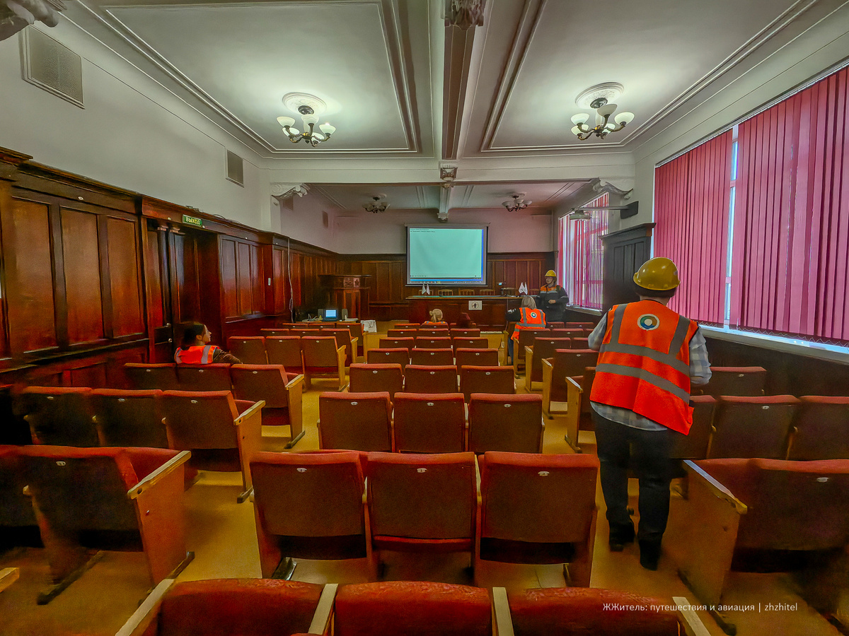 Прежде чем попасть на производство, нужно пройти инструктаж по технике безопасности. Инструктаж проходит в историческом зале. Здесь специально сохраняют интерьеры, которые помнят историю завода.