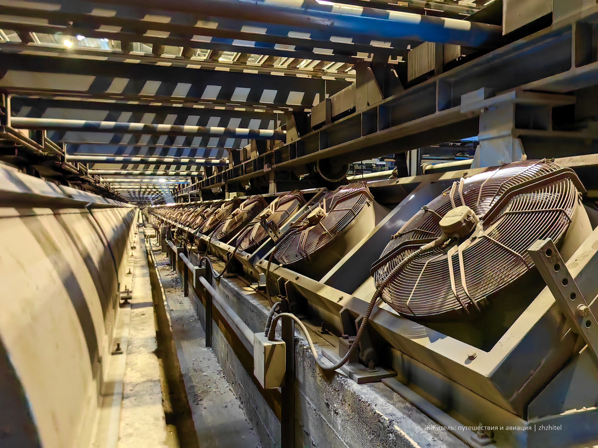 Путь в цех лежит через тоннель, проходящий под предприятием. В летний зной это самое комфортное место на всей территории, тут дует ветер и царит прохлада. Предприятие режимное, на проходных нужно показывать пропуск и дуть в алкотестер.