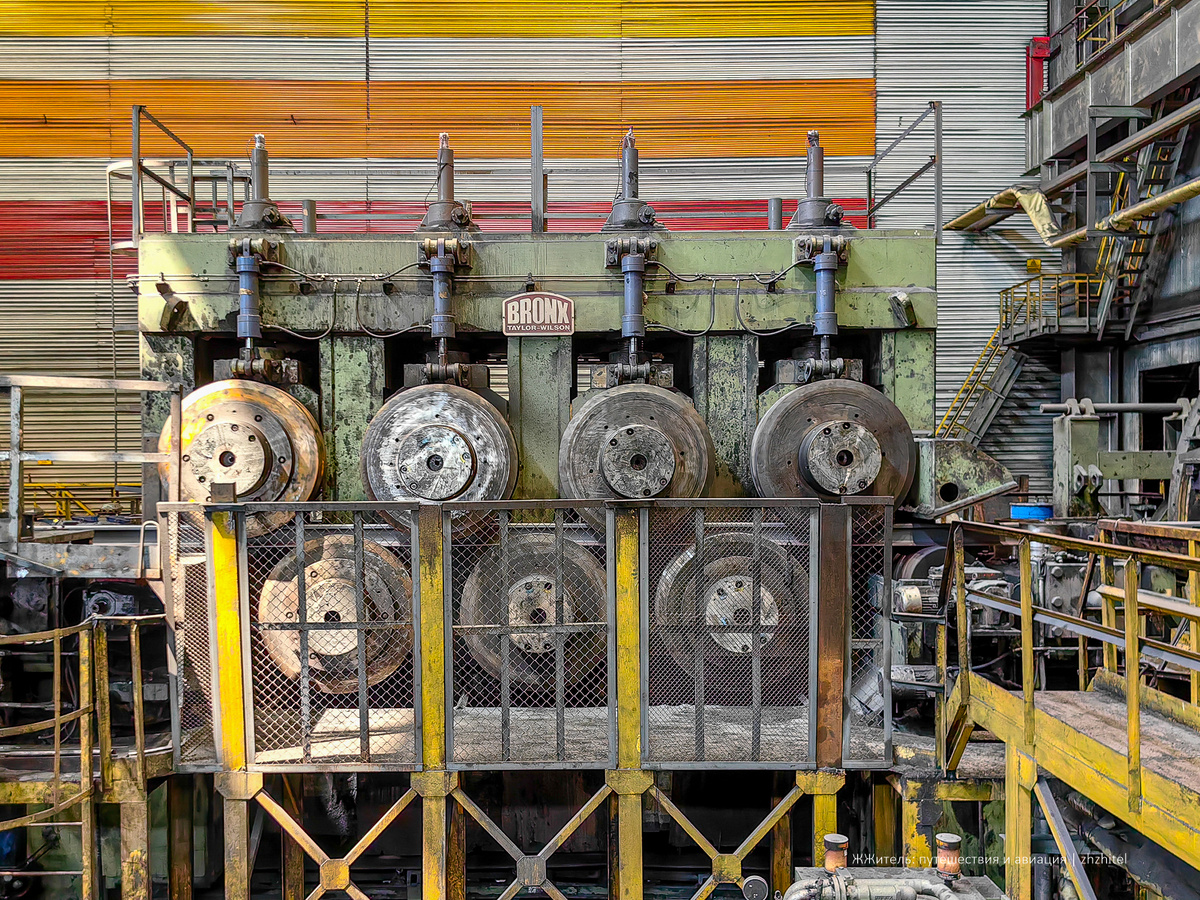 Из печи раскаленная заготовка подается на установку гидравлического сбива окалины. Напор воды свыше 200 атмосфер. Зрелище впечатляющее, но смотреть можно только на безопасном расстоянии и в очках: пар, жар, шум, куски летящей окалины.