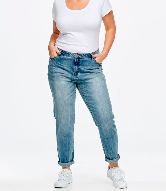 Джинсы с высокой талией помогут утянуть её и обеспечат комфортную посадку. Низкие джинсы выявляют все, что мы хотим скрыть. Прямые джинсы — самый универсальный и лучший выбор для типа фигуры «яблоко». Форма этих штанин помогает сбалансировать пропорции.