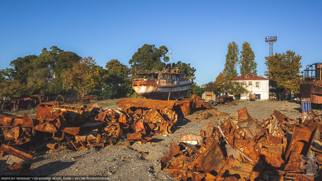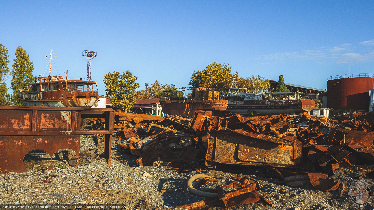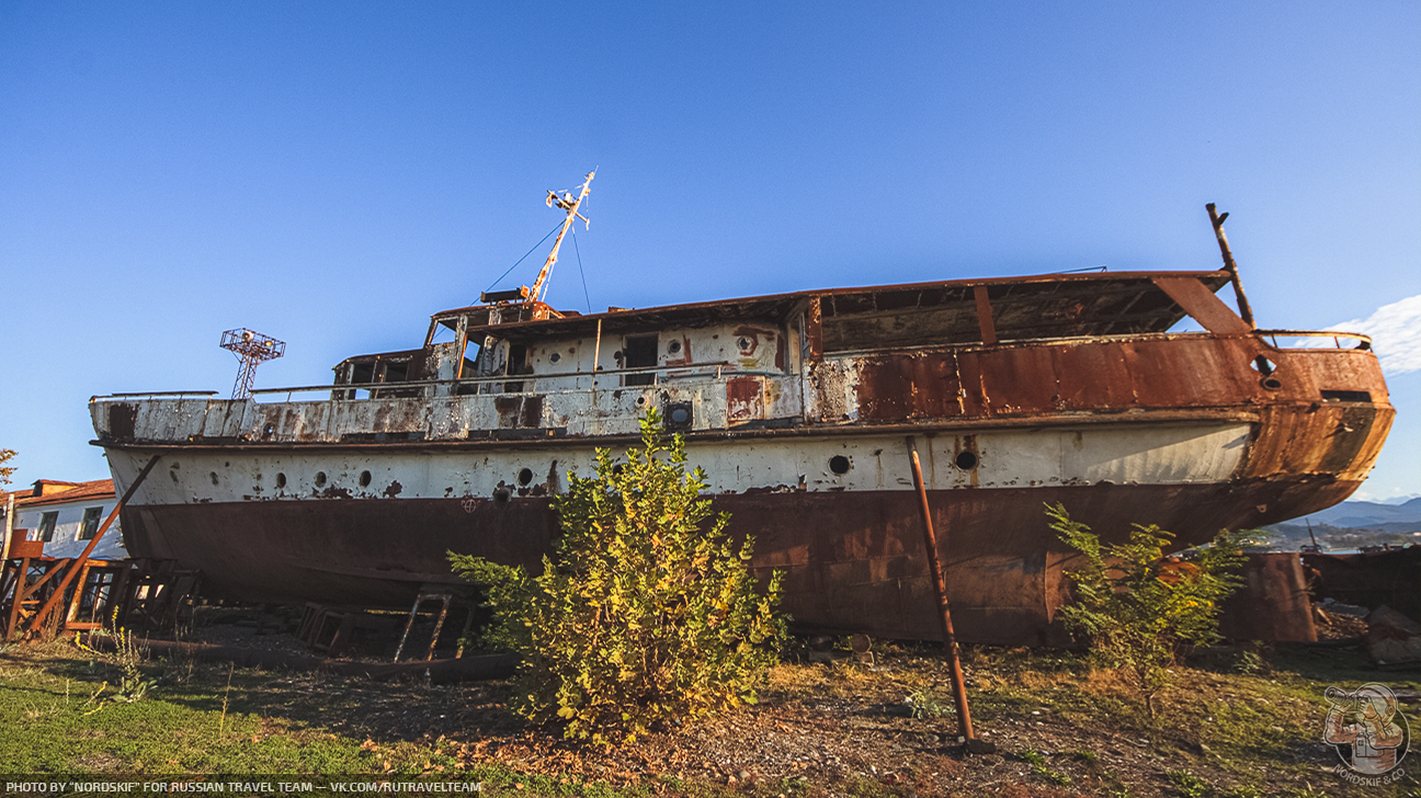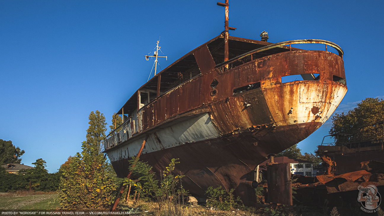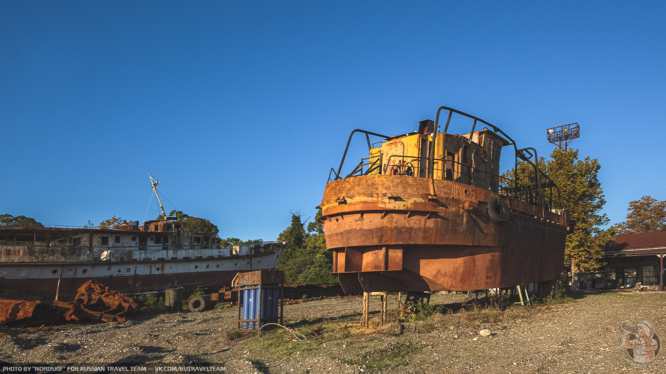 Крайне любопытное и фактурное «заброшенное место». Ещё несколько лет назад количество судов здесь хватило бы для создания маленького музея, но увы, ещё одной достопримечательностью в Абхазии больше не стало и скоро остатки судов распилят на металл и поездом отправят на переплавку в Россию… Грустный, но вполне очевидный расклад.