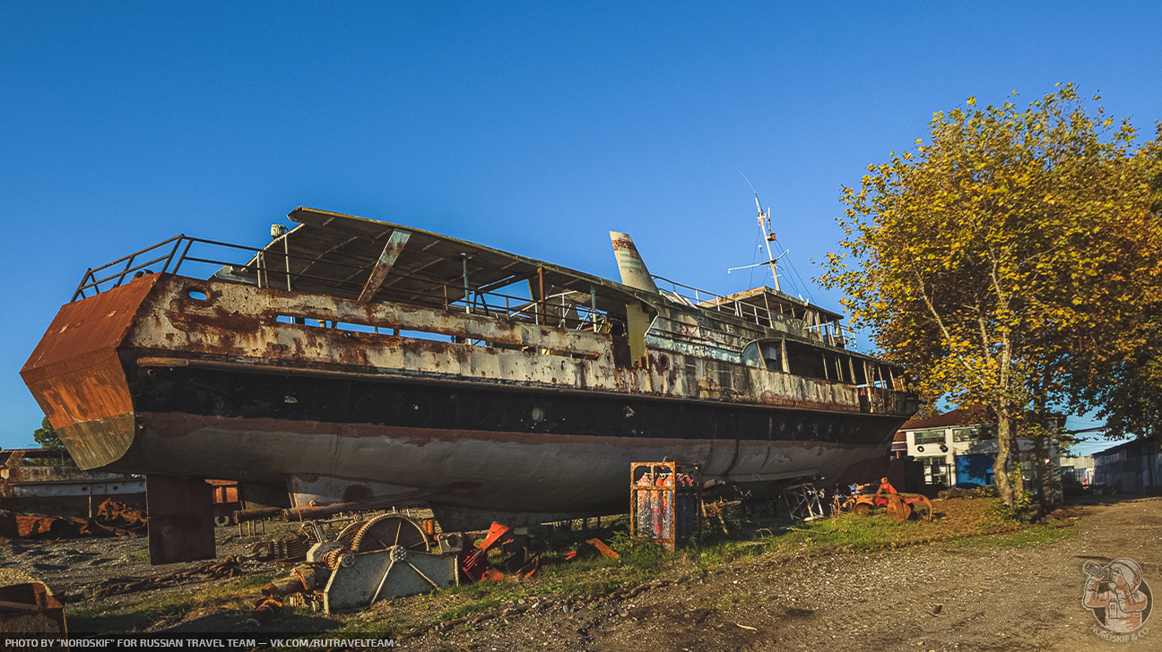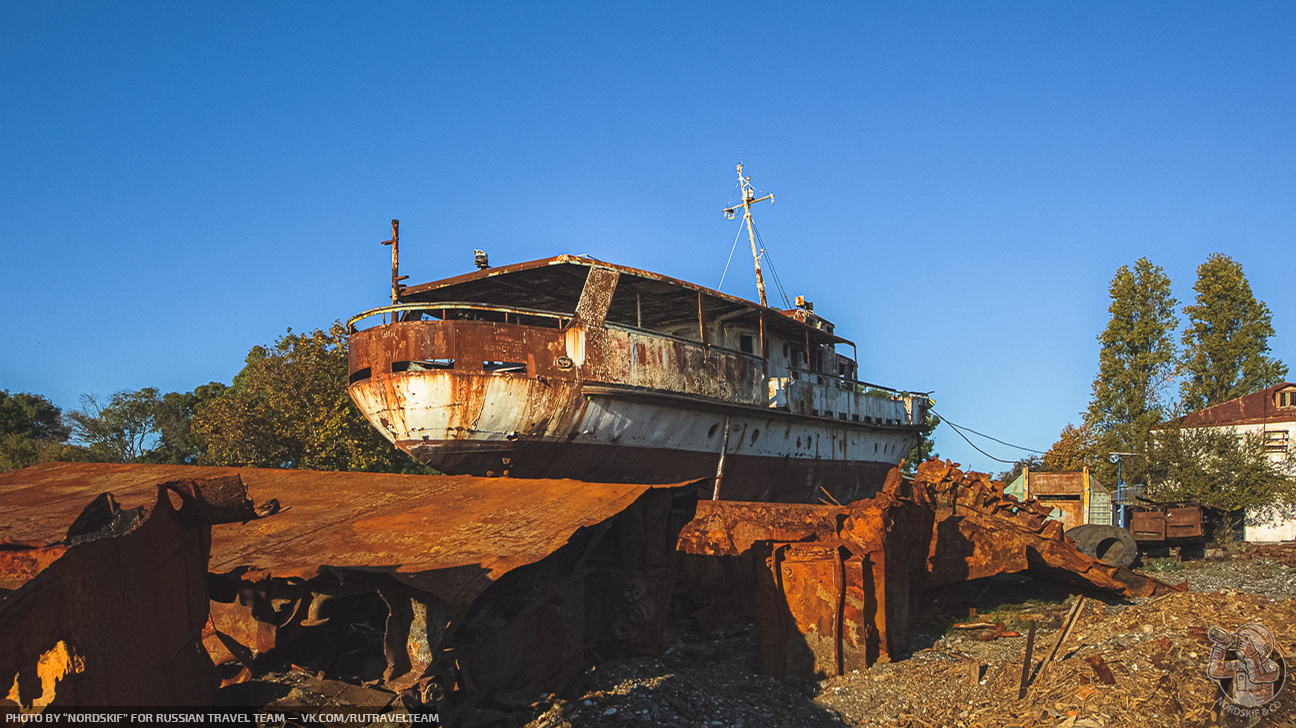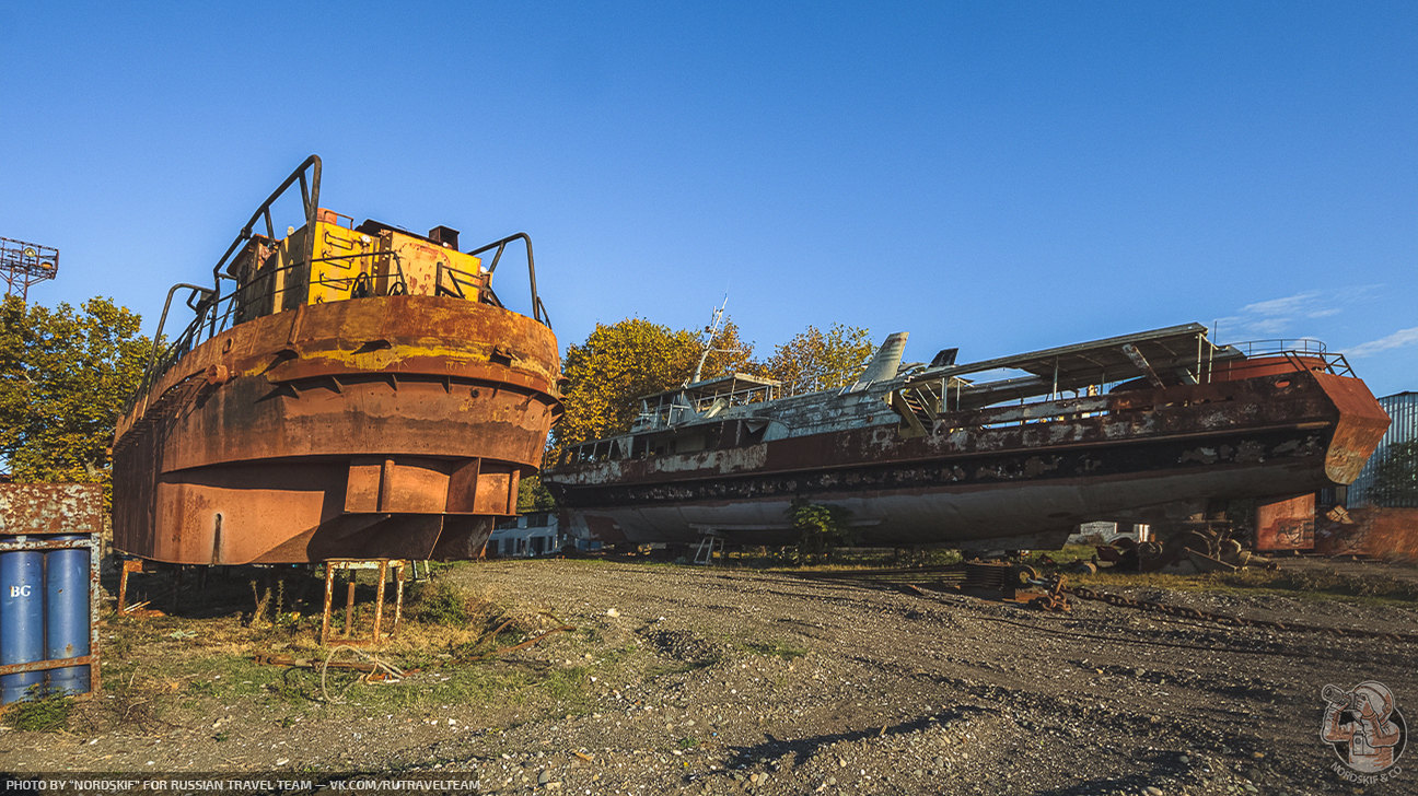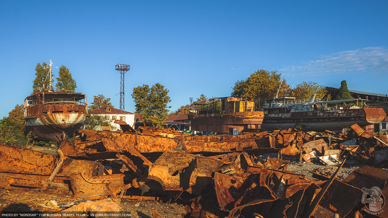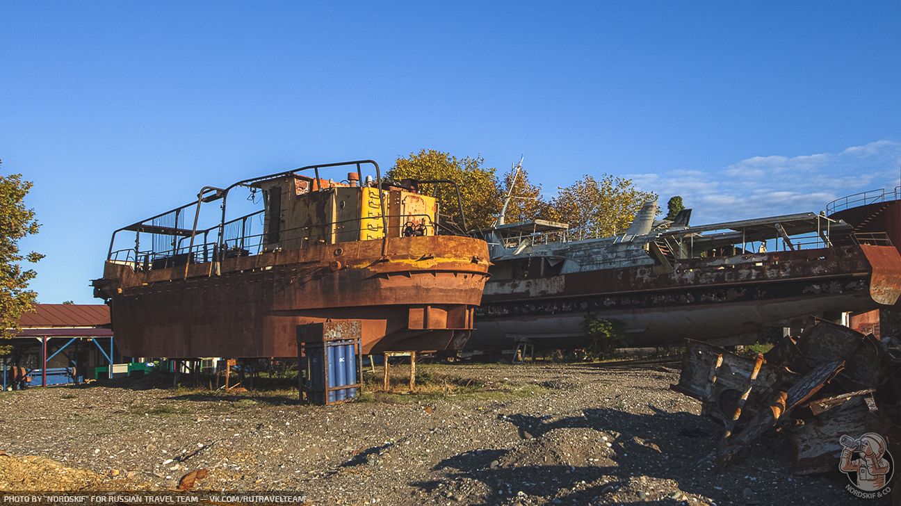 Крайне любопытное и фактурное «заброшенное место». Ещё несколько лет назад количество судов здесь хватило бы для создания маленького музея, но увы, ещё одной достопримечательностью в Абхазии больше не стало и скоро остатки судов распилят на металл и поездом отправят на переплавку в Россию… Грустный, но вполне очевидный расклад.