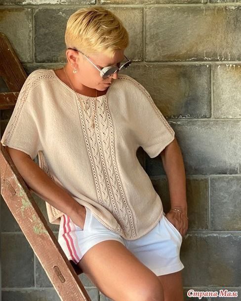 Лёгкий и воздушный свитер в нежном кремовом оттенке с элегантным вертикальным ажурным узором, который придаёт модели изысканность и уникальный шарм. Отличный выбор для тёплых дней, сочетает в себе комфорт и стиль.