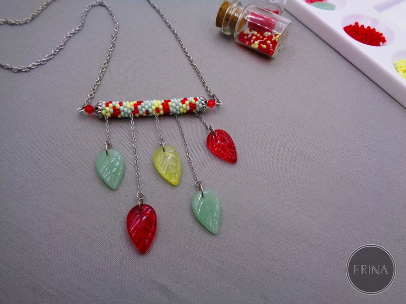 - Разноцветные бусины в форме листьев — 5 шт.;