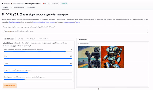 Графический пользовательский интерфейс, созданный для запуска мультимодальных искусственных интеллектуальных моделей для создания искусства бесплатно из Google Colab (CLIP Guided Diffusion и VQGAN CLIP, Latent Diffusion, скоро будут добавлены еще), без необходимости изменять ни одну строку кода и знать какое-либо программирование.