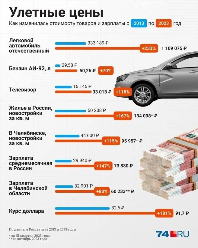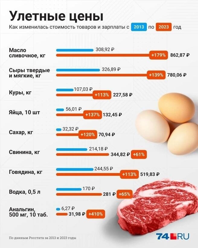 По данным за 10 лет с 2013 года по 2023 год вот данные роста цен: