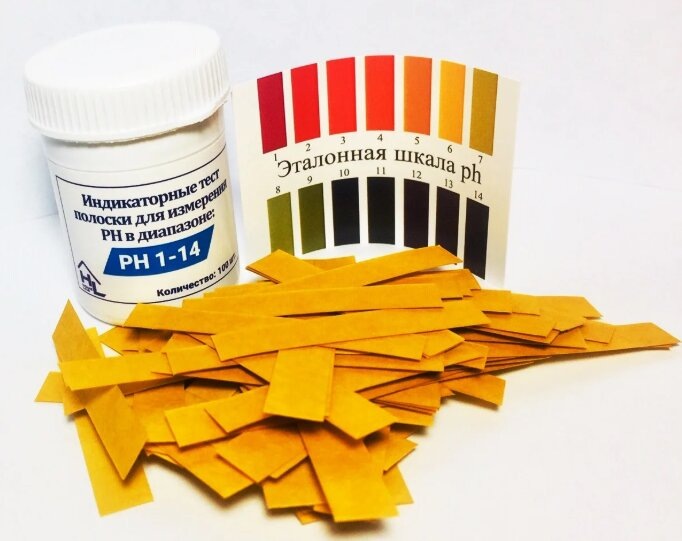 Кислотно-щелочной баланс определяется применением лакмусовых тест-полосок, купленных в аптеке (100 руб.). Бумажная тест-полоска опускается в ёмкость с водой на 3-5 сек.: при окрашивании в синий цвет — вода считается щелочной, в красный — кислой. Эталонная шкала содержит 14 делений: 14 — вода щелочная, 1 — кислая. Оптимальный уровень PH находится в пределах от 6 до 8.
