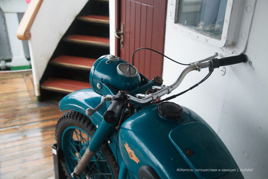 На научно-исследовательском судне «Витязь» на палубе располагается …мотоцикл. Это несколько необычно видеть такое транспортное средство на борту судна. Он, безусловно, внушительных размеров, но не настолько, чтобы устраивать на нем заезды. Тем не менее, мотоцикл не просто так здесь находится. Научно-исследовательское судно «Витязь» принимало участие во множестве длительных экспедиций по всему миру. За время своей деятельности «Витязь» побывал в 100 портах 49 стран. На борту находились члены экипажа и ученые. Им приходилось выполнять разнообразные задачи как на море, так и на суше. От визитов к коллегам до закупки продовольствия. Для поездок на берегу и предназначен был мотоцикл. Но это еще не всё. Для более серьезных поездок также был ГАЗ-69А. Этот автомобиль сейчас стоит рядом с «Витязем» на территории музея мирового океана. Оказывается, эти машины участвовали даже в арктических и антарктических экспедициях. Небольшая справка: ГАЗ-69 — это автомобиль повышенной проходимости, созданный коллективом конструкторов Горьковского автомобильного завода под На научно-исследовательском судне «Витязь» на палубе располагается …мотоцикл. Это несколько необычно видеть такое транспортное средство на борту судна. Он, безусловно, внушительных размеров, но не настолько, чтобы устраивать на нем заезды. Тем не менее, мотоцикл не просто так здесь находится.