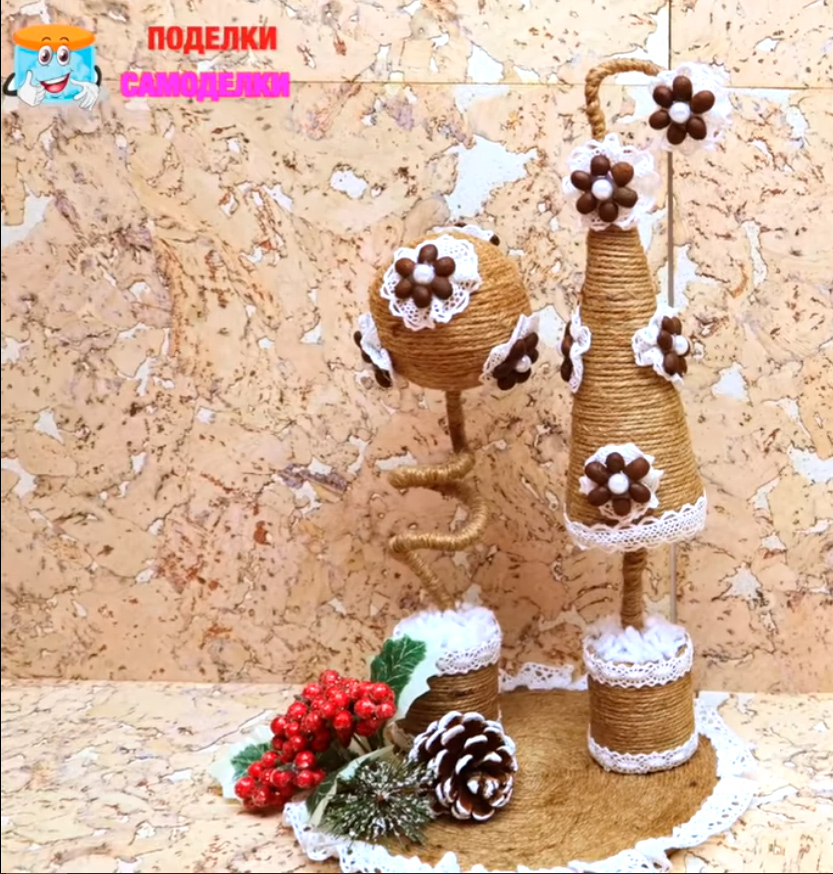 Новогодний дуэт в форме топиария и ёлочки из джута в качестве подарка на Новый год.