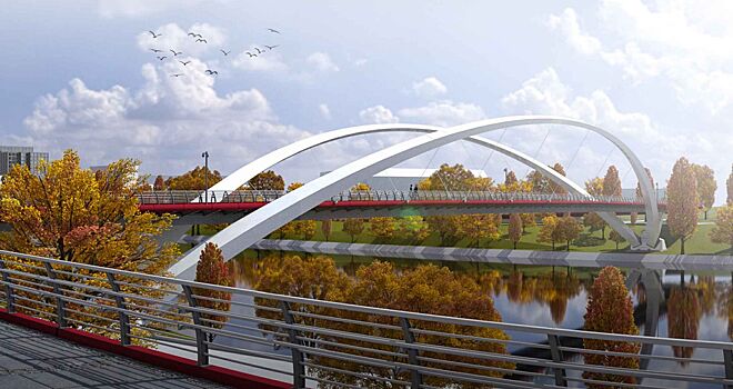 В западной части поймы пешеходный мост через Москву-реку соединит улицу Островную с Проектируемым проездом № 1074 и улицей Нижние Мневники. Второе мостовое сооружение строится в восточной части поймы, направляясь в сторону района Филевский Парк.