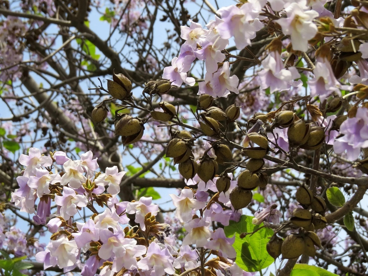 Стоит отдельно упомянуть о цветении. Взрослые деревья очень красиво цветут фиолетово-сиреневыми цветками. Запах цветков напоминает аромат ванили и привлекает пчел, это отличный медонос.