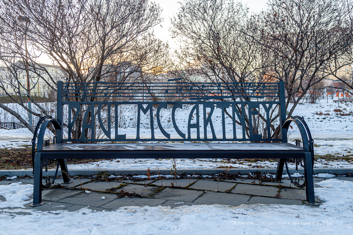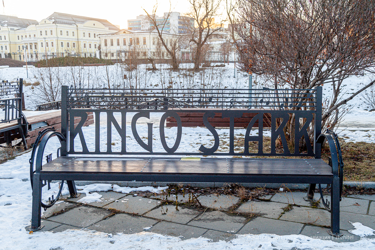 Не так давно рядом с памятником установили скамейки с именами участников группы. Ринго Старр.