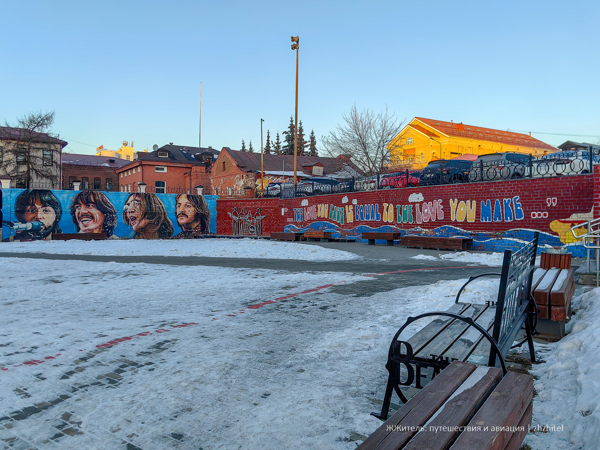 Памятник «Битлз» находится недалеко от центра Екатеринбурга. Найти его можно, если идти по «красной линии», либо просто вдоль берега Исети.