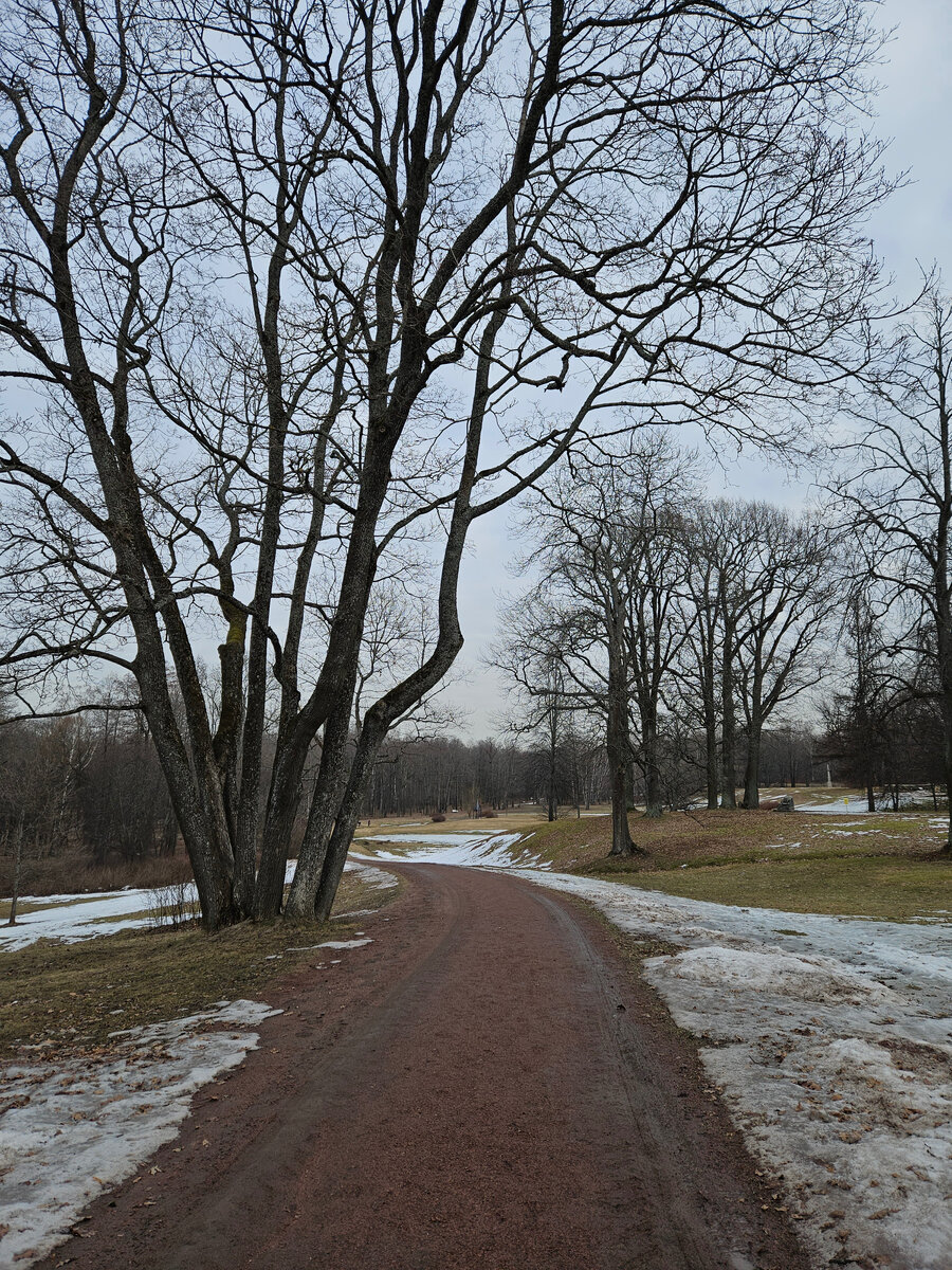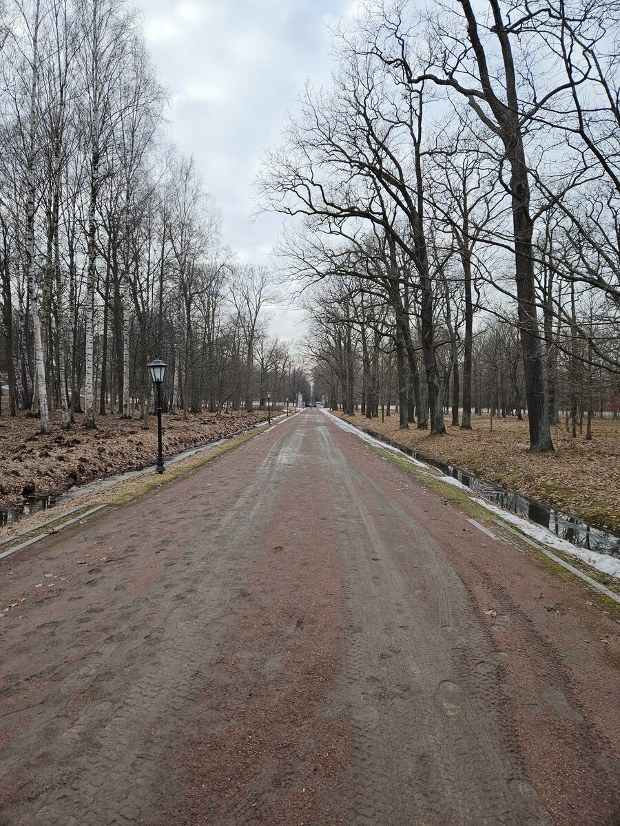 На мой взгляд, конкретно в марте ходить здесь не очень приятно из-за грязи. Конечно, если вы приехали в Петербург на несколько дней, то выбирать вам не особо приходится — везде такое состояние покрытия, но если вы планируете поездку заранее или живёте здесь, то лучше посещение этого и других дворцовых парков отложить до апреля.