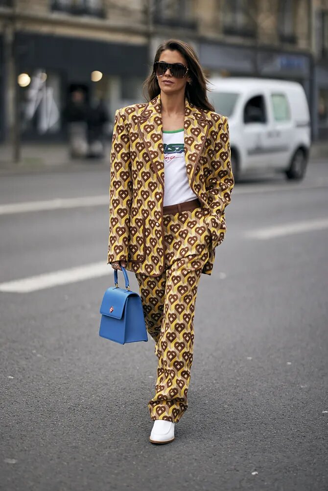 Совет стилиста: У меня настоящая одержимость принтованными пиджаками, особенно в полоску. Хотя их сочетание может показаться сложным, для меня лучший и самый простой способ — носить их с джинсами или брюками со складками. Не забывайте смешивать цвета: если пиджак яркого цвета, сочетайте его с нейтральными вещами, а если у него принт в бежевых или темно-синих тонах, носите его с красным или оранжевым платьем.