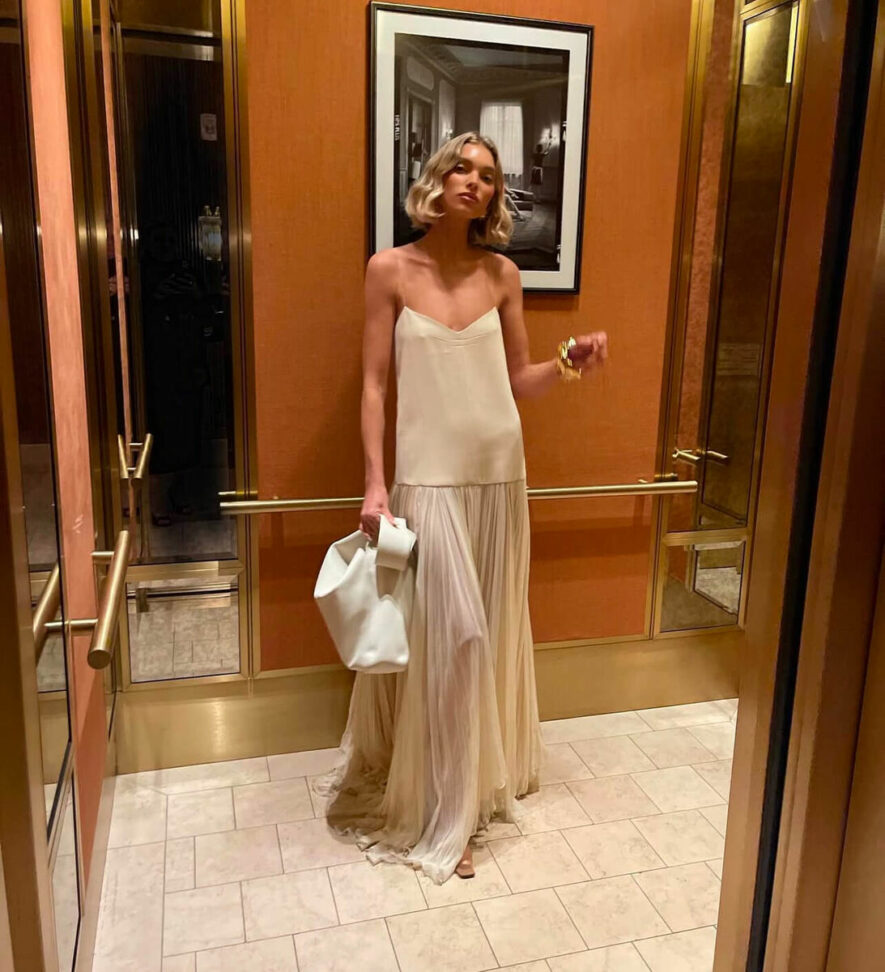 Очарование платьев с заниженной талией в их универсальности. Мы можем носить их практически везде: от непринужденных встреч с друзьями за чашкой кофе до элегантных званых ужинов.