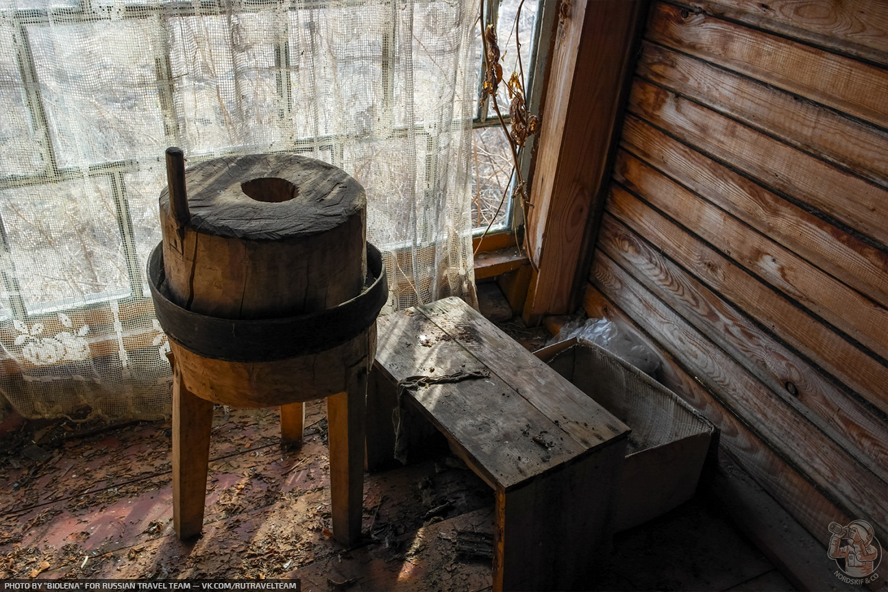 В некоторых домах уцелели предметы быта и мебель. Я как житель города, которого мать не вывозила в деревню на лето с любопытством это рассматривала. Мне всё это было в диковинку.