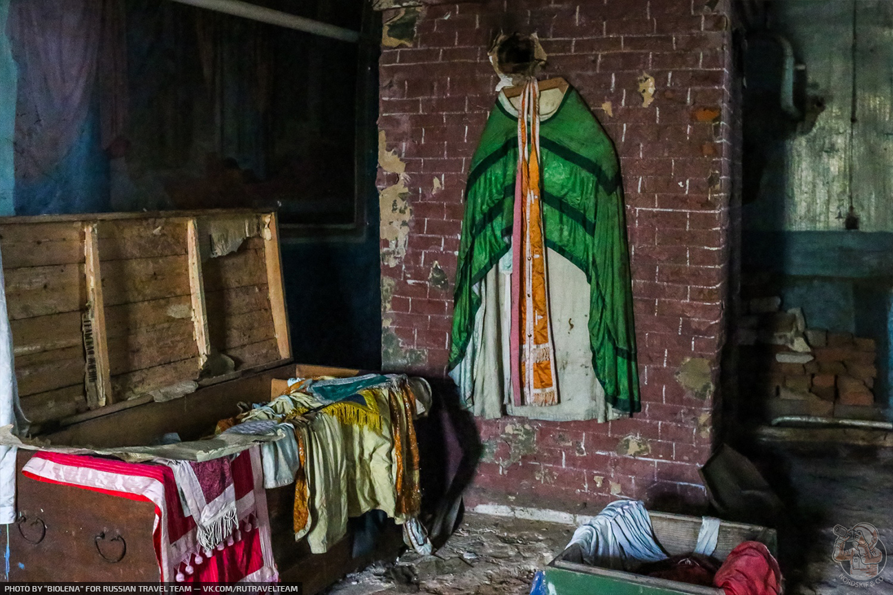В одной из комнат мною было найдено облачение священника и другие церковные принадлежности. По всей видимости хотя бы раз в год здесь проводятся службы… Или проводились ещё совсем недавно.