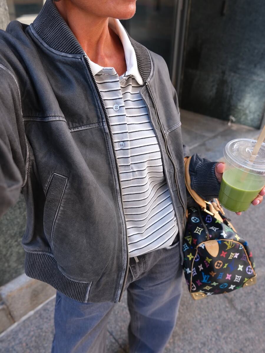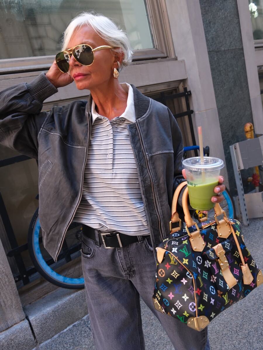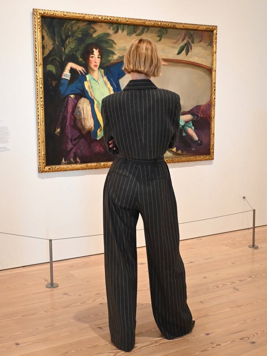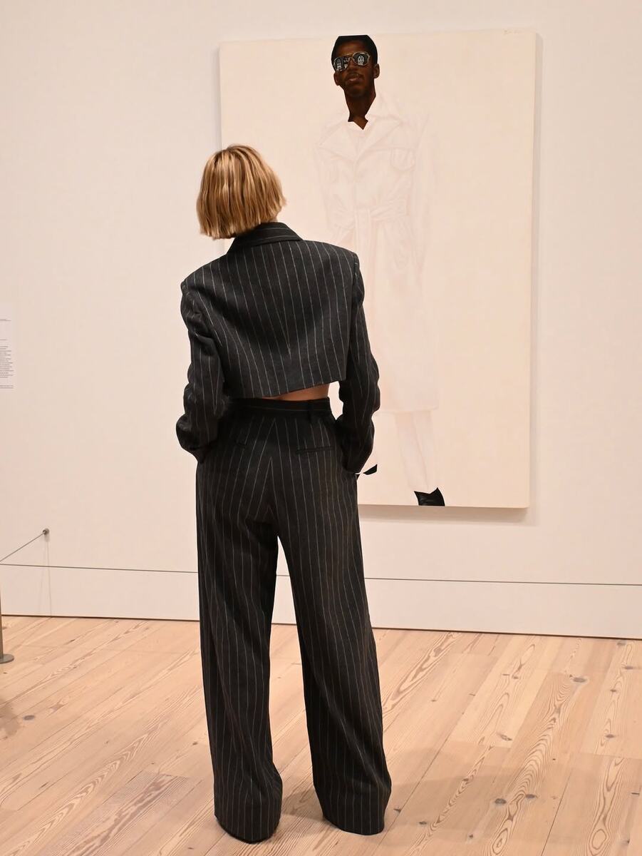 Пока Робертс демонстрировала нам светлую сторону тонкой полоски, Лесли Бибб напомнила о строгом, но всегда шикарном подходе. Этой осенью Бибб показала, что полоски являются основой делового стиля для осени. В элегантных брюках со складками и укороченном жакете серого цвета с белыми полосками и выразительными плечами она доказала, что классика не обязательно должна быть скучной. Это был идеальный баланс структуры, изысканности и современной женственности.