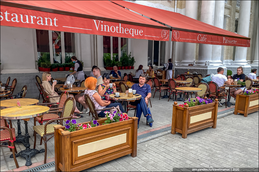 Более-менее заполненным я увидел только одно кафе, около гостиницы «Севастополь». Да и то это все местные: здесь популярное место для деловых встреч.
