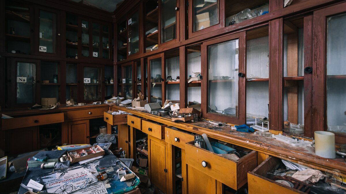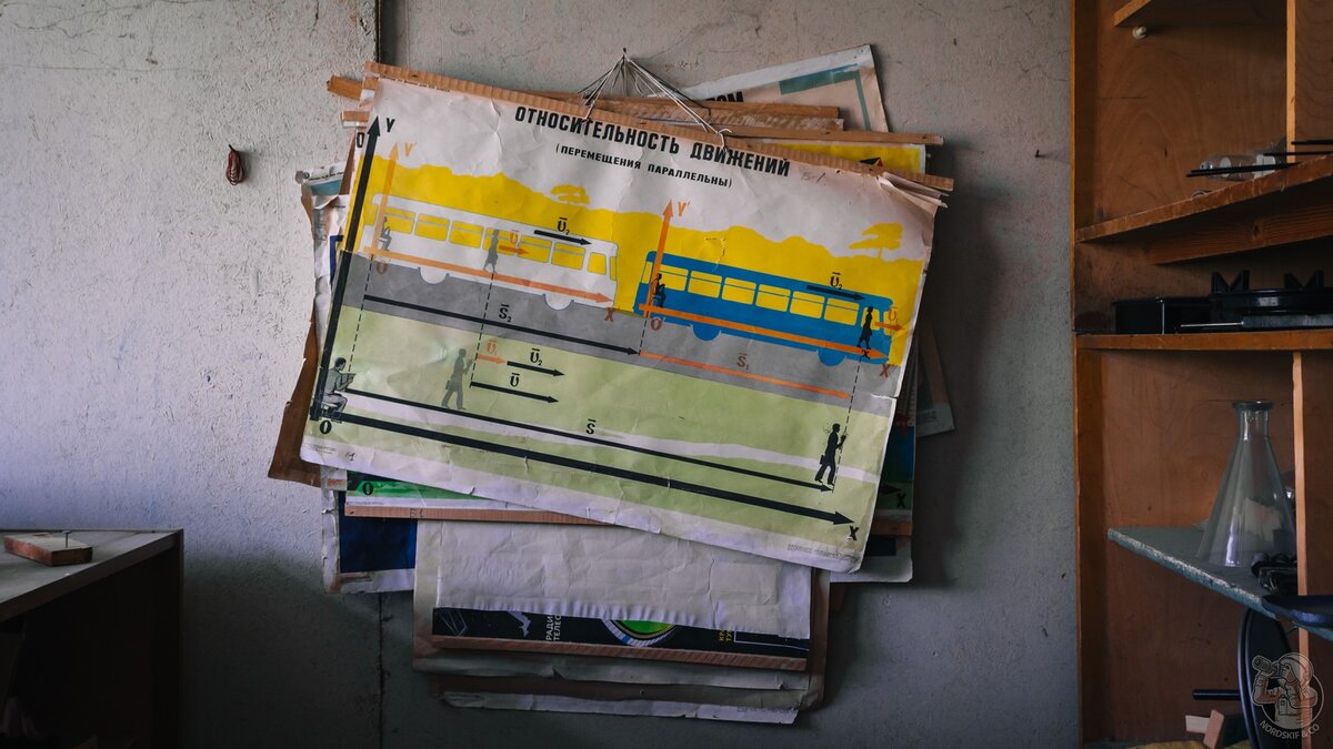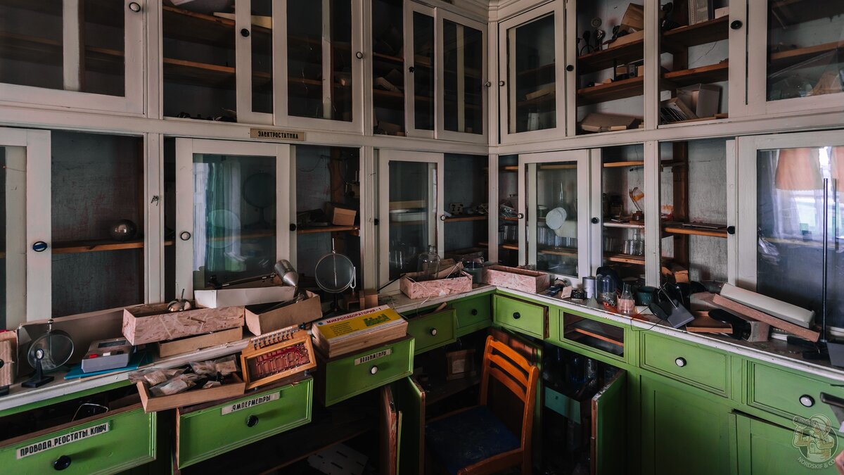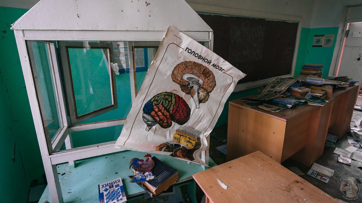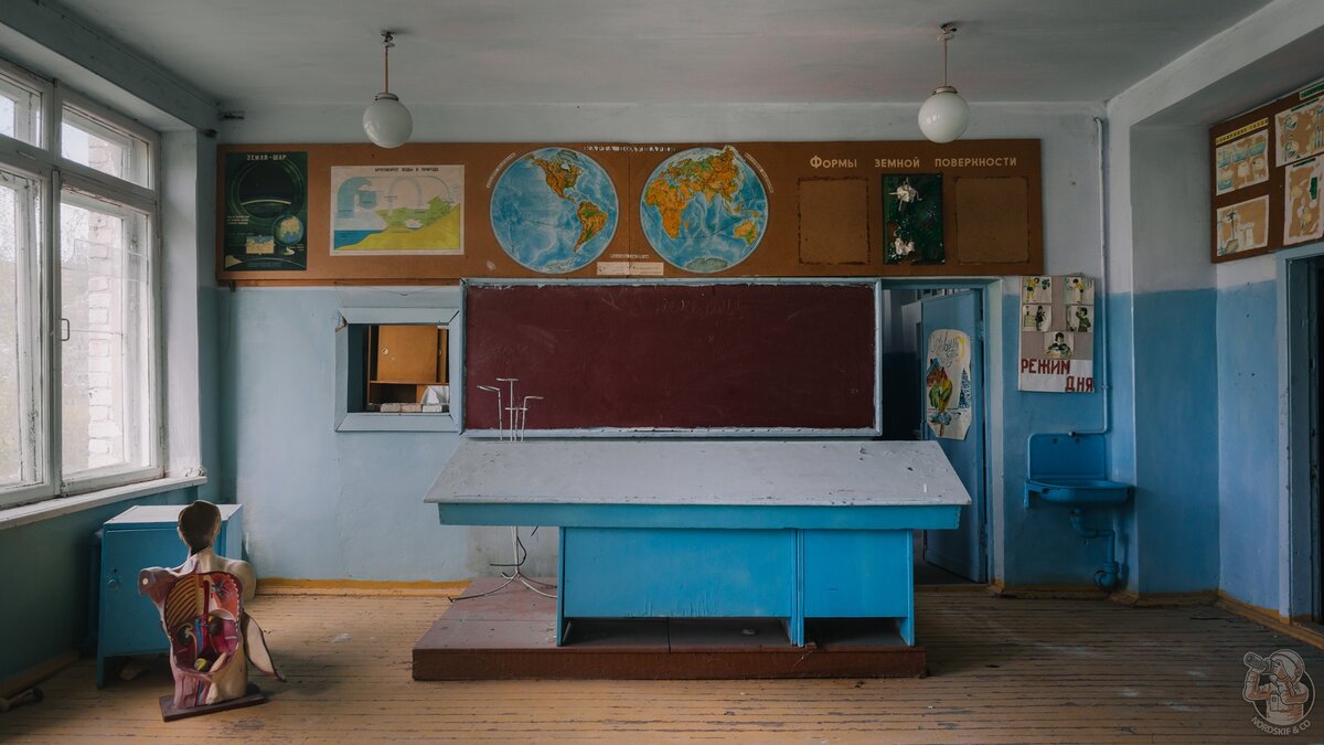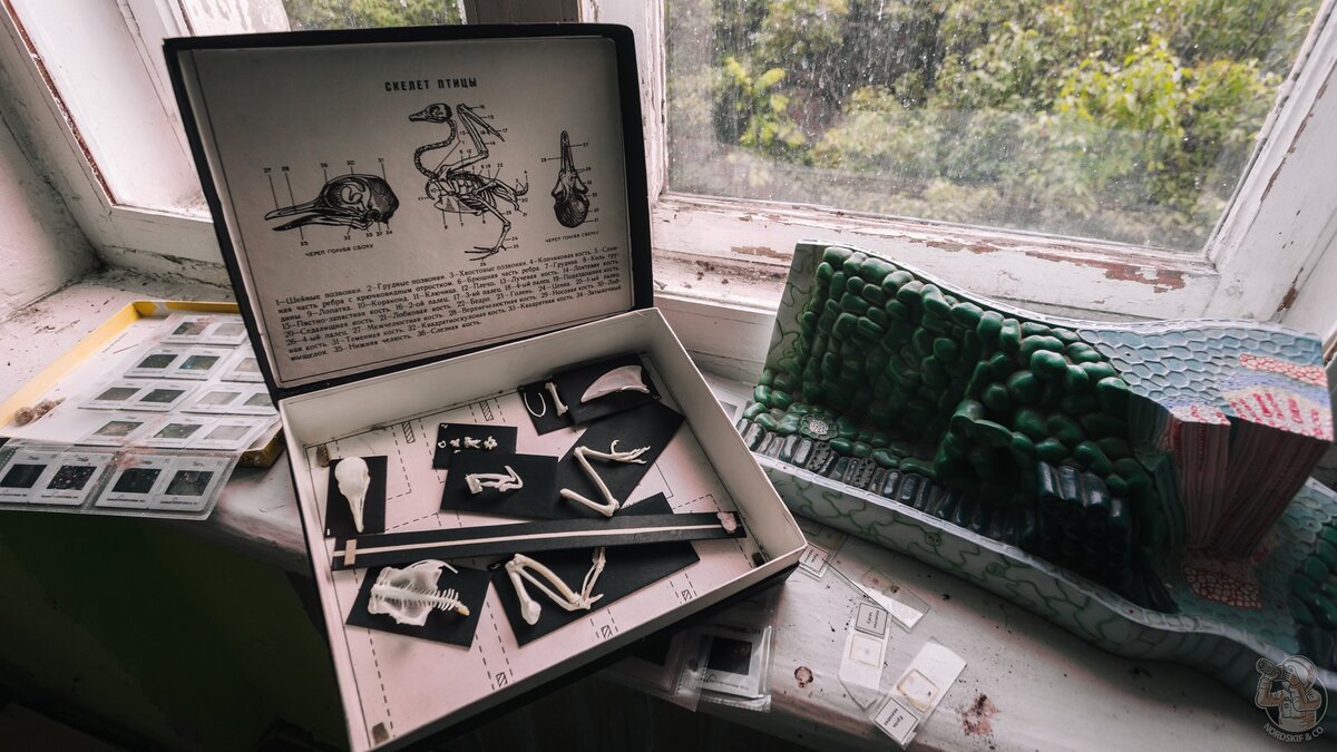 Кабинет химии по обыкновению встретил едким запахом и множеством ящиков с различными веществами и растворами. Кабинет физики — кладовой с большим количеством приборов. В одном из классов относительно свежие учебники валялись огромной кучей прямо на полу. В кабинете биологии сохранился подробно описанный скелет птицы, макет со строением кожного эпителия и изображение головного мозга в разрезе.